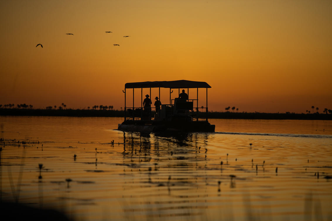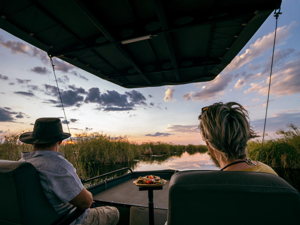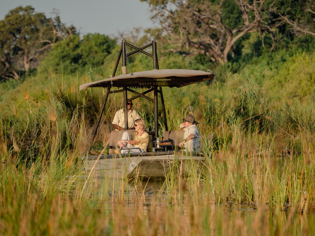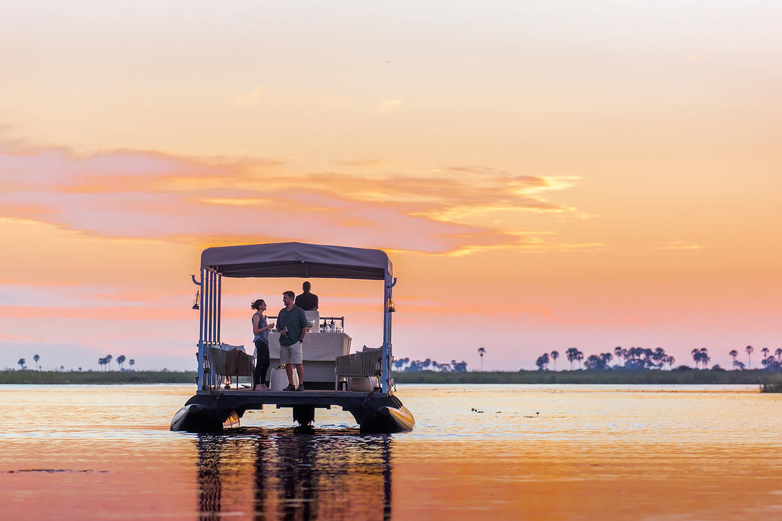 Explore the Linyanti River by barge, perfect for lunches, picnics, or sundowners. Glide past sleeping hippos, or find crocodiles sunning themselves on the banks of the lagoon. Water-based game viewing at its finest. * Water levels permitting.