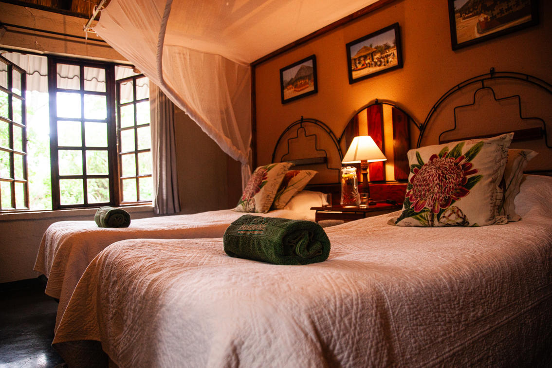 Each of our 12 Dutch style cottages are nestled beneath a granite kopjie. They are either double or twin, with the option of a third bed in 9 of the rooms. We have a baby cot that can be put in the rooms if the family requires it.