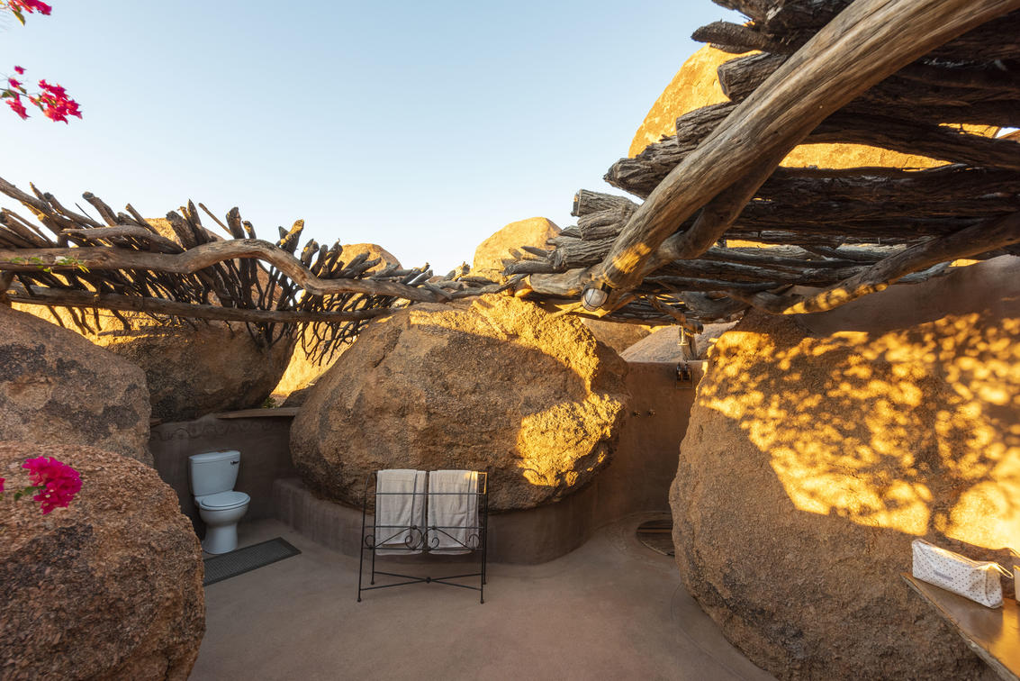 The twin-bedded bungalows are in the shape of rondavels and have boulder, cement and rock walls ensuring that on entry, feel like a cool secluded cave with outside decks to admire the view. The en-suite, private bathrooms are built amongst the rocks, allowing guests to take advantage of the outdoor weather. Hot water is supplied by wood-burning ‘donkey’ boilers and solar geysers.