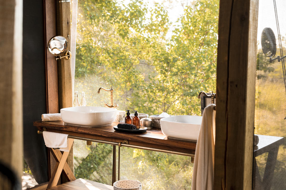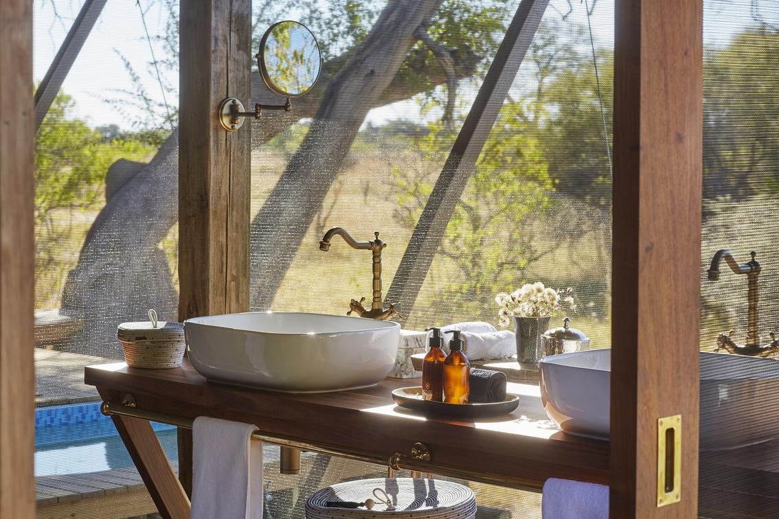 Each tent is over 100 sq metres in size with a sunken, outdoor seating area with hanging basket chair and plunge pool, a separate dressing room, fans, and ensuite bathrooms with indoor & outdoor showers and bathtubs. Each room has over the bed air-conditioning, with tea and coffee making facilities, a Nespresso machine with 100% compostable coffee pods and a mini-bar.
