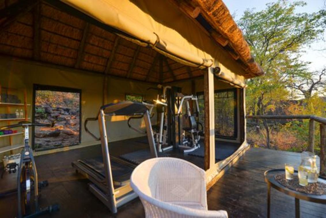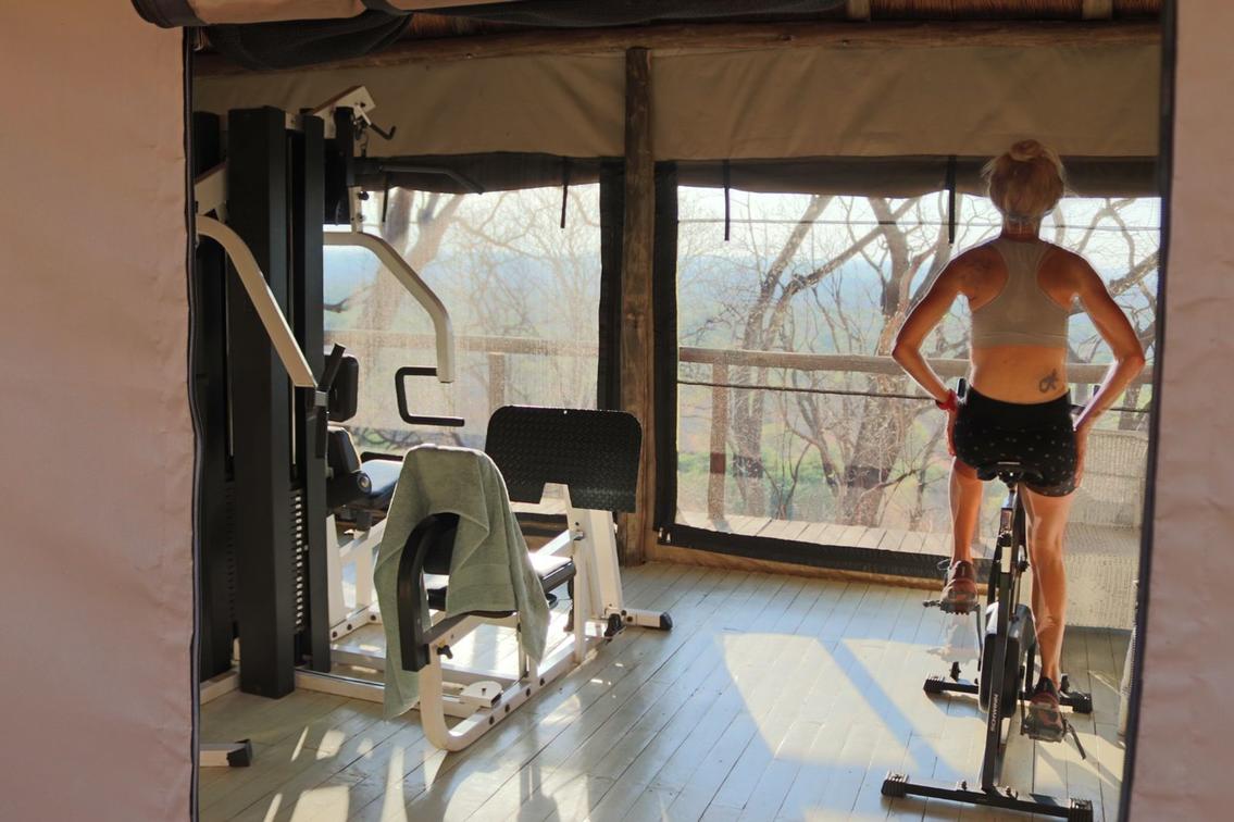 Feeling a bit stiif after spending a lot of time travelling and on safari - spend some time in the gym with a view.