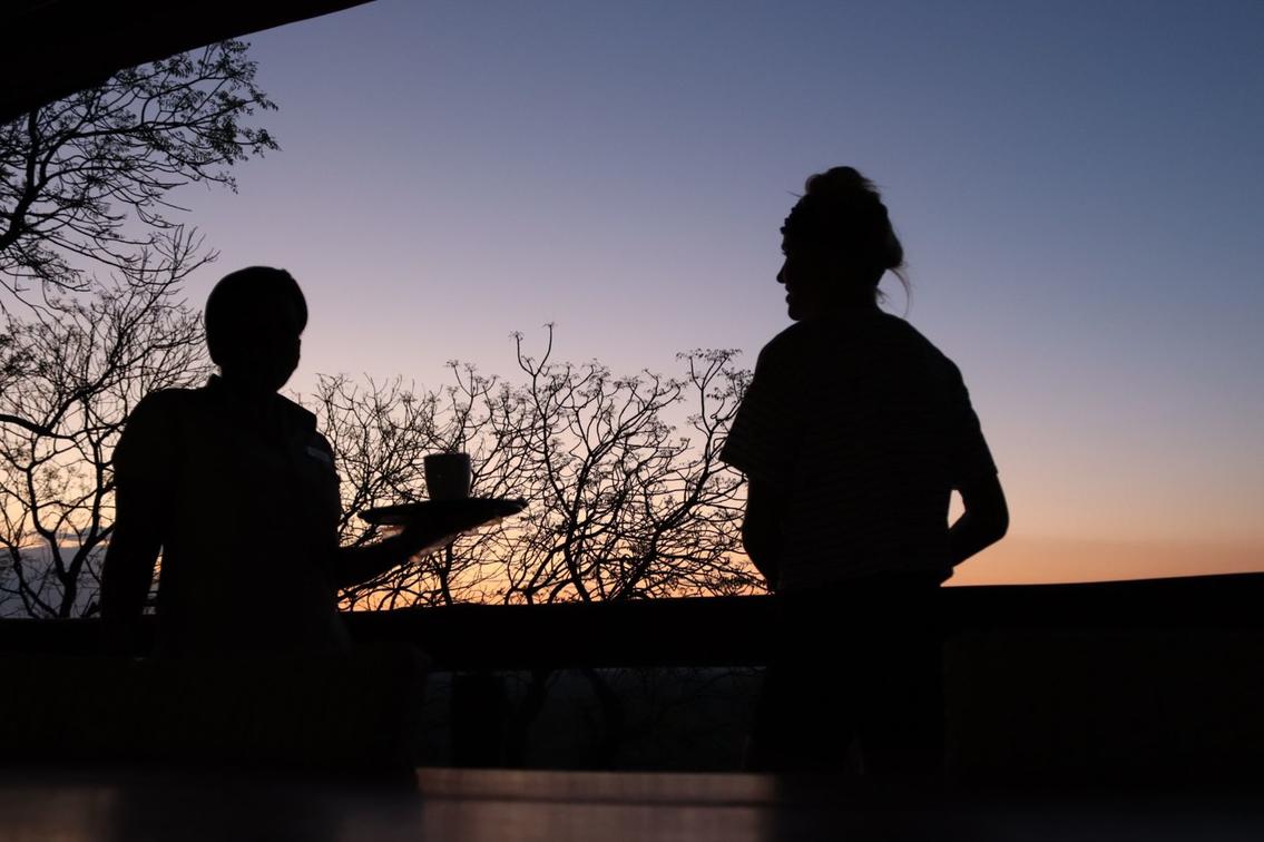 You'll return to camp around 18:30 to freshen up before dinner. Your guide will meet you at a pre-arranged time at your room and accompany you to the main area for a pre-dinner drink around the bonfire in the Boma, where you can share stories with other guests. Dinner is served in the dining area starting at 19:30.