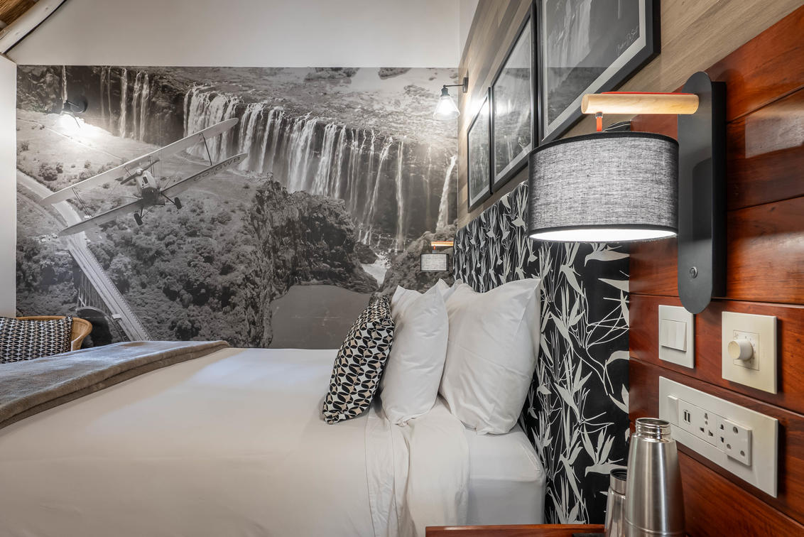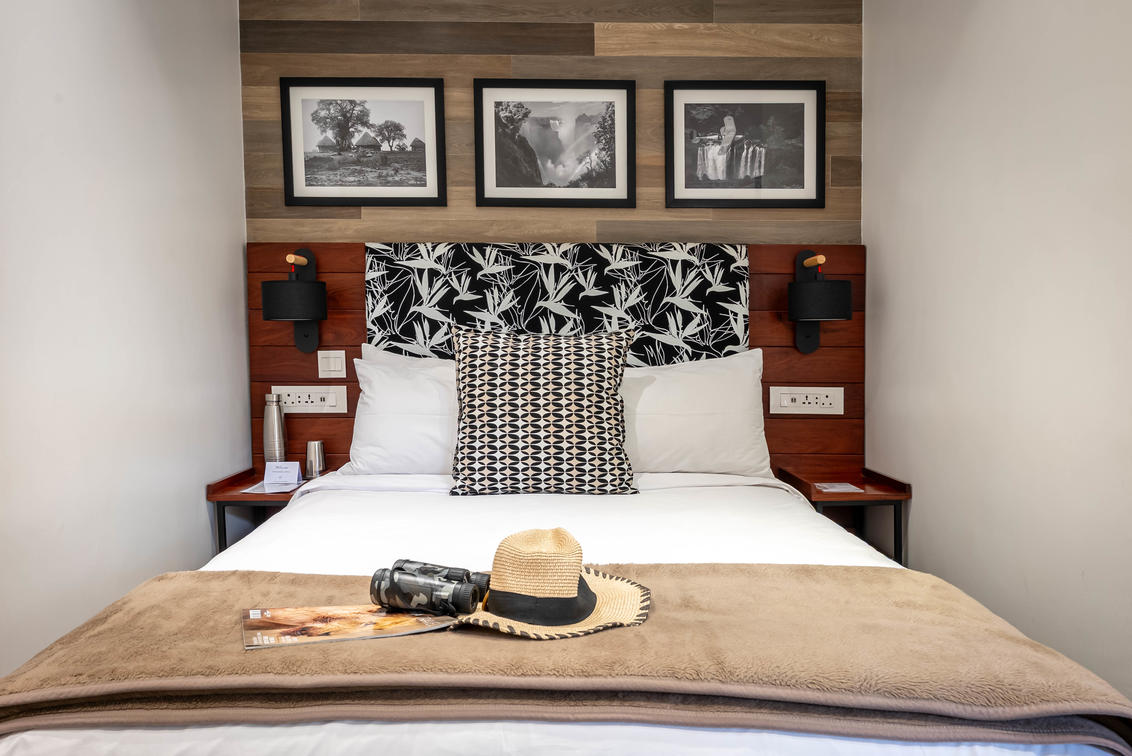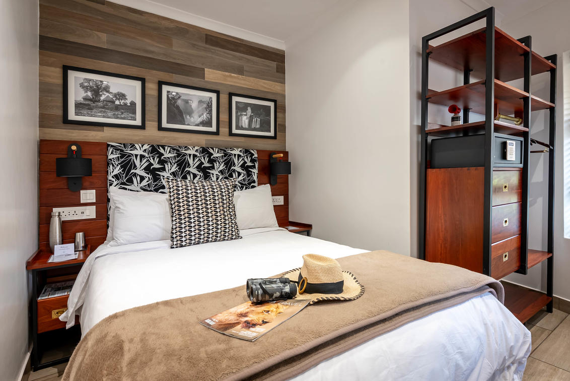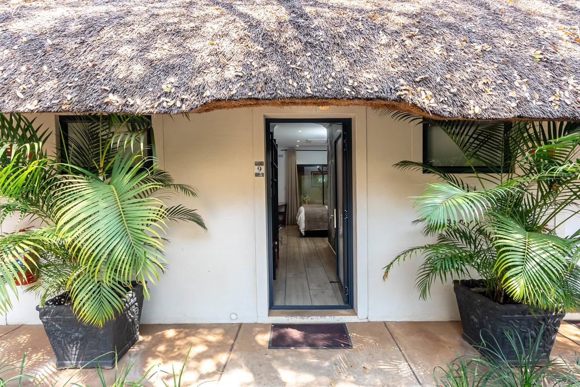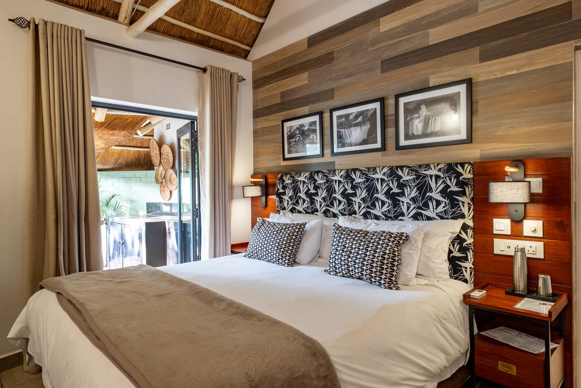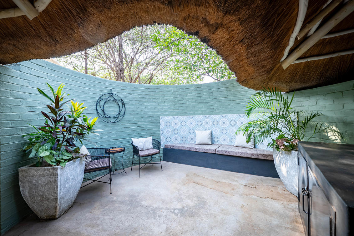 Introducing our popular king patio room, a delightfully cozy and compact room under a traditional thatch roof with a private patio space leading off the bedroom. The patio is the perfect spot to catch the first rays of sunlight and enjoy an early morning coffee or stargaze with an evening nightcap in the privacy of your own space. A generous seating area and countertop with plug points offers a practical space for you to enjoy your down time after a busy day of adventuring in Victoria Falls. The main room may be smaller than some of our other bigger rooms, but we know you will love the private outdoor space!