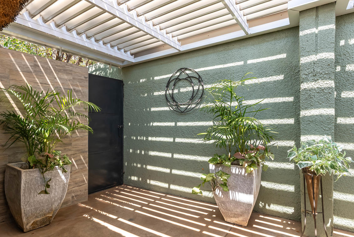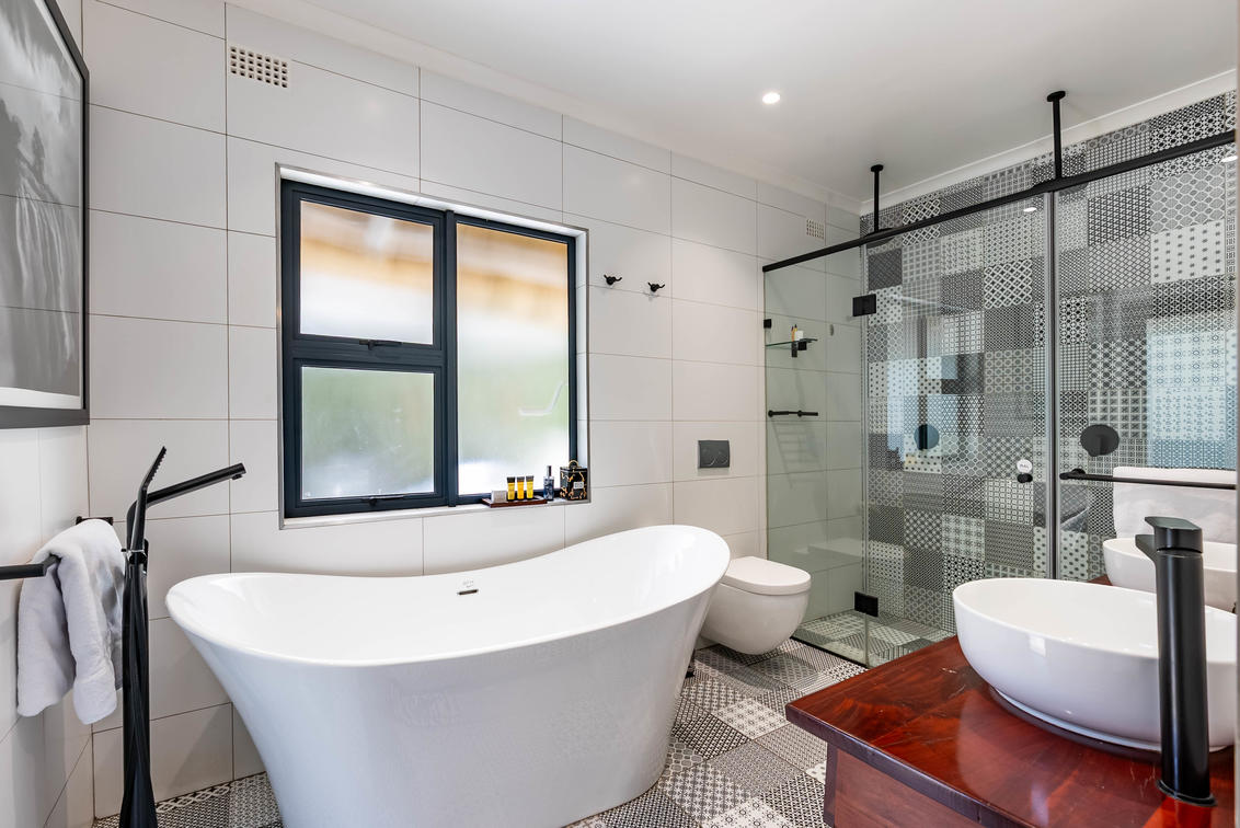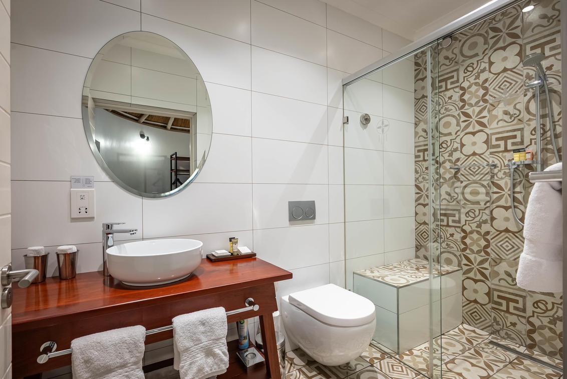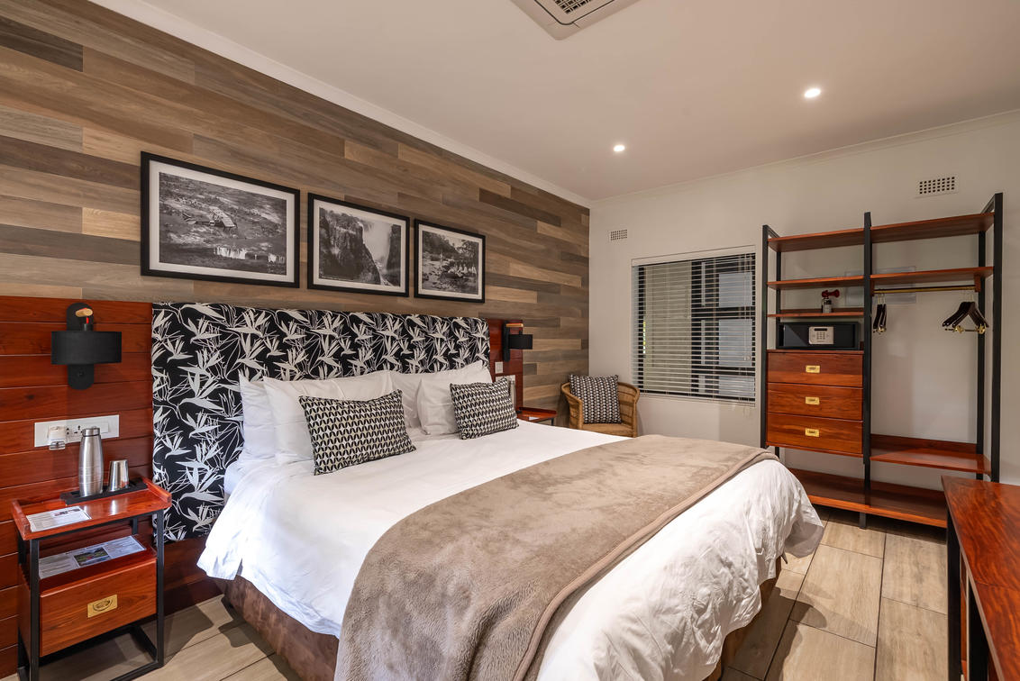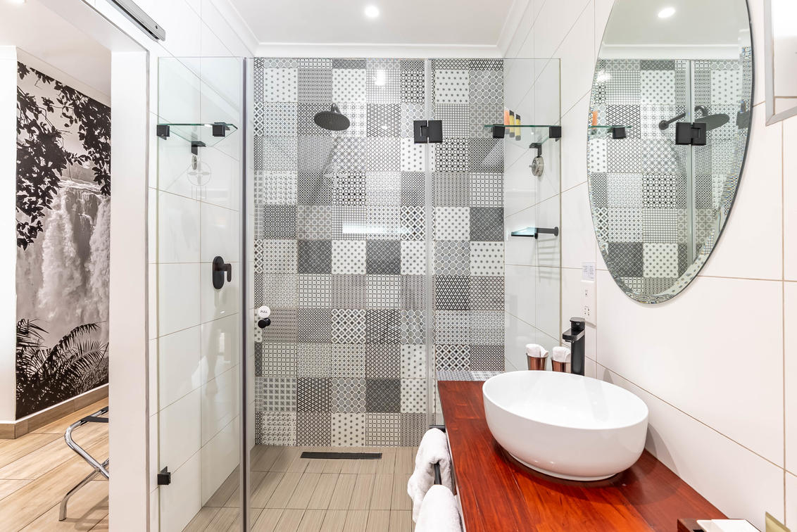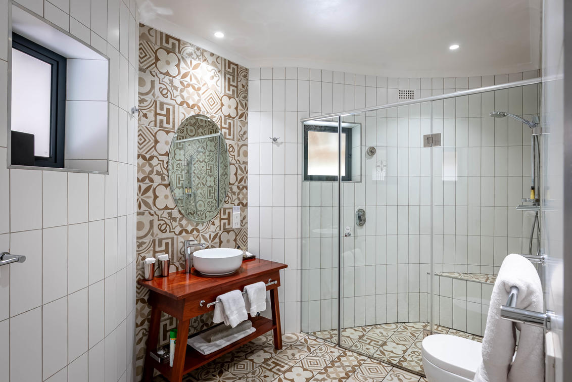 A beautifully appointed, cozy yet compact room leads out onto a spacious private patio courtyard, with extra shade provided by a modern louvred roof cover. Sip an early morning coffee in the privacy of your own space or enjoy an evening nightcap, before retiring for the night to the comfort of your luxury king bed with extra-long mattress and crisp, white linen. An added surprise is a small bath, cleverly tucked into the bathroom opposite the glass shower, perfect for soaking your weary feet after a day full of adventures!