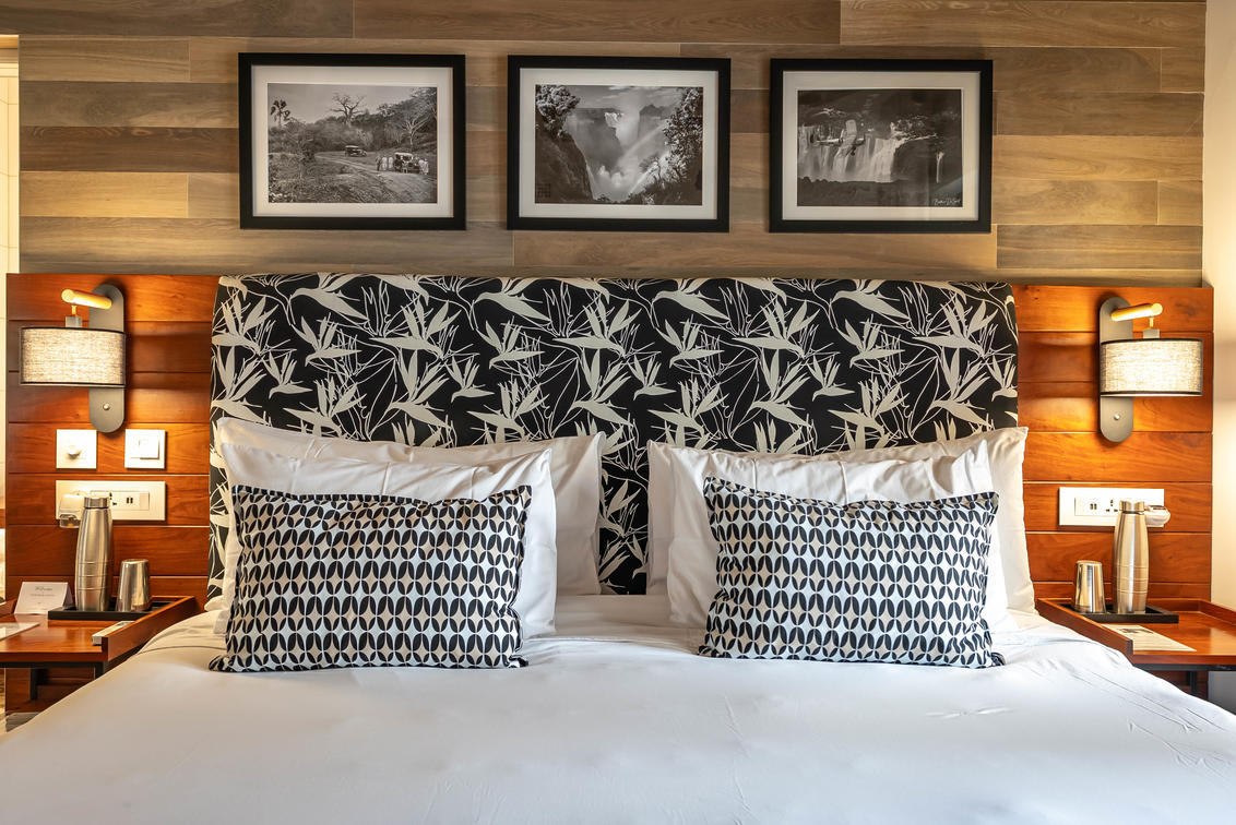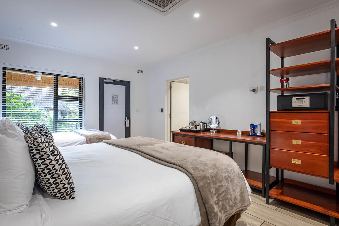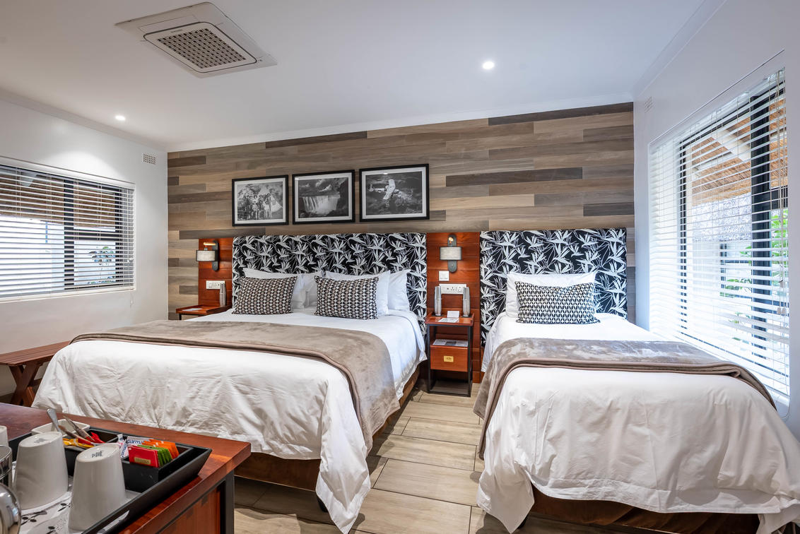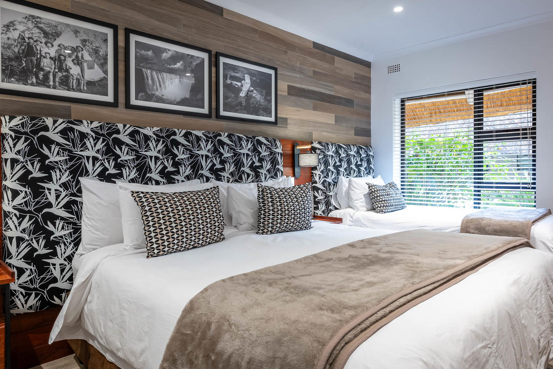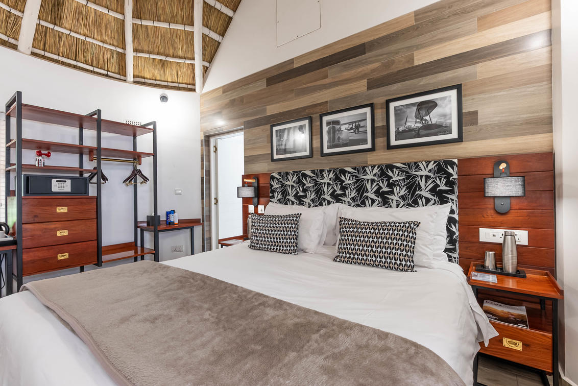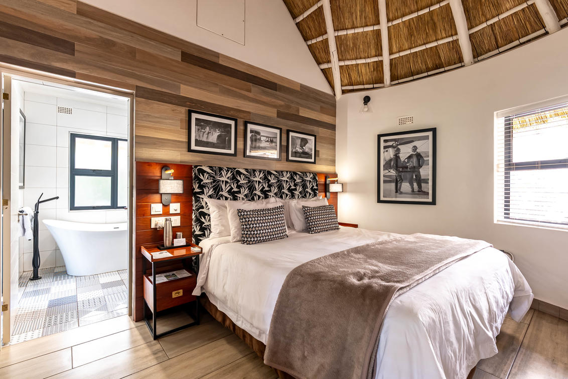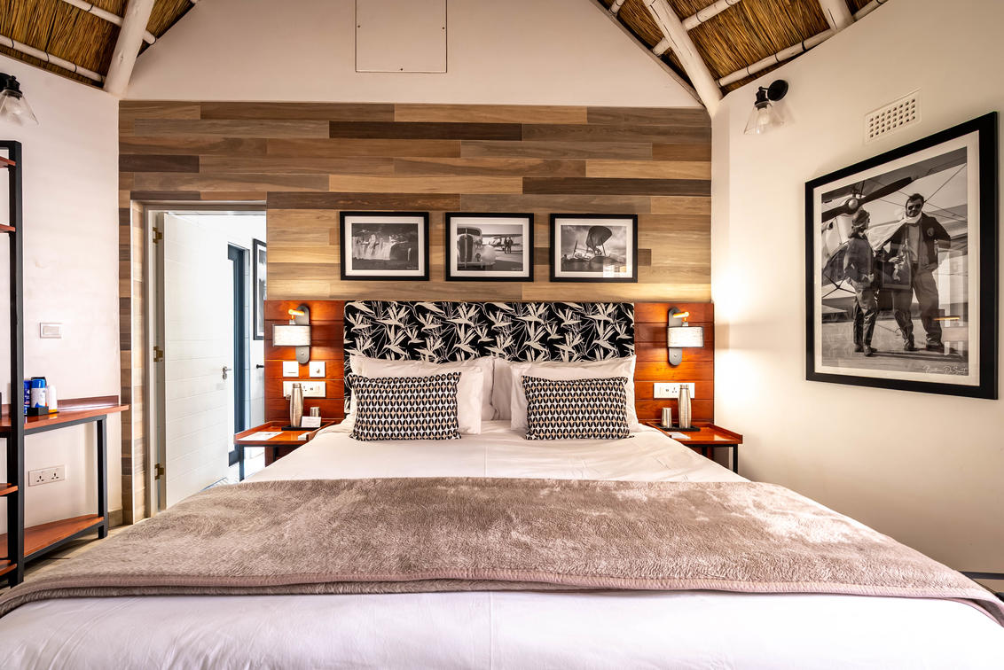 This stunning room under a traditional thatch roof has all the modern conveniences with a classic vintage touch. Spacious and light, with clean cut lines and a touch of luxury, makes this room ideal for your needs. Nostalgic room décor sets the scene for a unique African experience. Your sleep experience just got a whole lot better when you find all your switches and international plug sockets within easy reach, without even having to get out of bed! Hotel quality extra-long mattresses and fresh, crisp linen ensure a serene and comfortable night’s sleep. Choose your preferred bed configuration for a flexible sleeping arrangement.