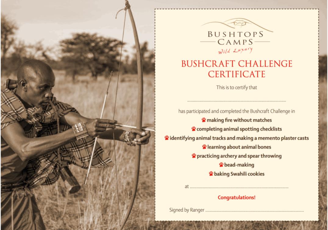 Completing the challenge leads to a Bushtops Bushcraft Certificate, authenticating unique skills and a sense of real achievement. This activity carries no additional cost.