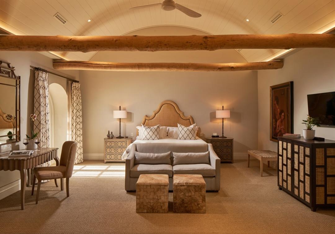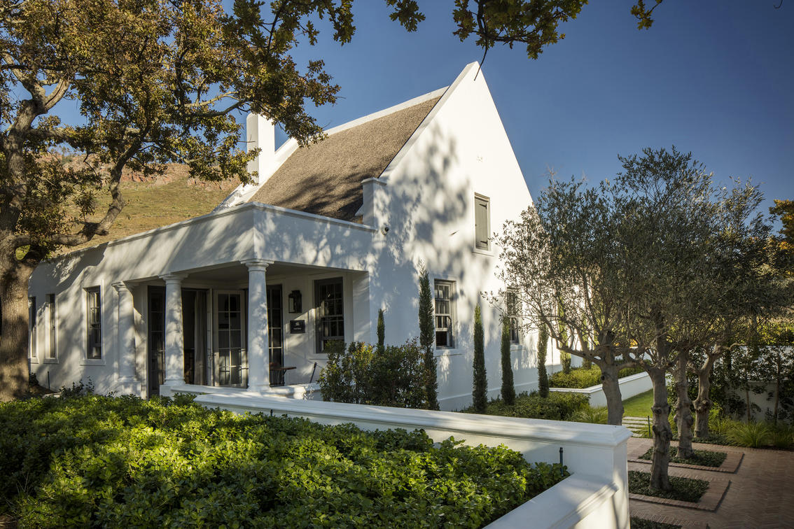 A size of 213m²/2 297ft² and surrounded by vineyards, Max House is housed in an original gabled building that reflects its Cape Dutch heritage. It has a courtyard with a private garden and comprises an Executive Suite, two Classic Rooms, a living room with a fireplace and a dining room. A pantry and a kitchen are available for the use of a private chef, which can be arranged.