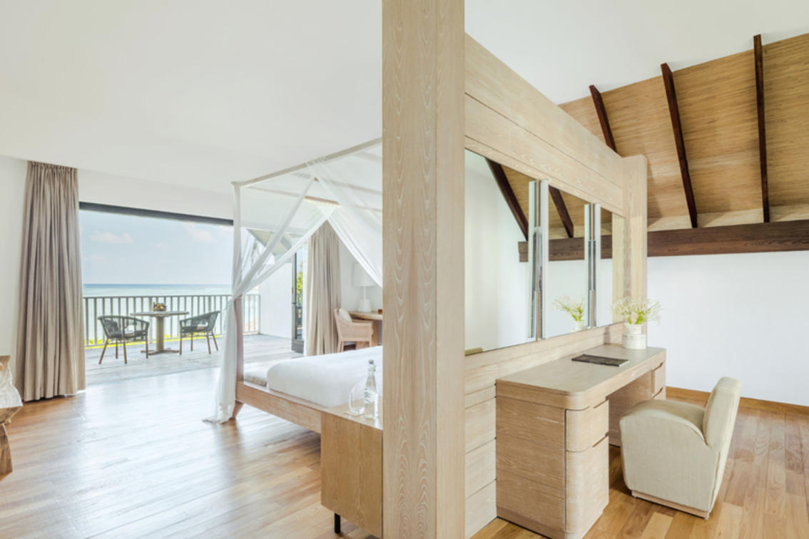 The two-bedroom duplex beach house leads on to its own private lawn. Surrounding a large private pool is a secluded sundeck complete with sun loungers and furniture, allowing guests to eat, drink and watch the sun rise and set from the comfort of their own space. Modern amenities include air-conditioning, a flat-screen television, complimentary Wi-Fi, and a Nespresso machine.