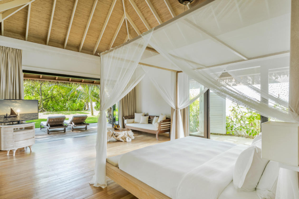 Made up of two sleek, comfortable bedrooms (two doubles), the accommodation offers sunrise views out over an endless ocean. It features a private lawn and swimming pool with space for al fresco dining and a full butler service. Alongside the sheer elegance, each villa is equipped with air-conditioning, a flat-screen television, complimentary Wi-Fi, and a Nespresso machine.