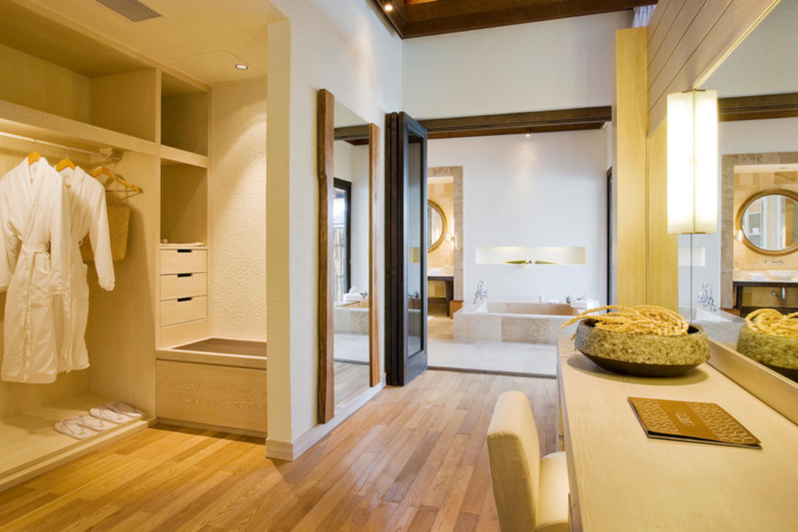 These two-bedroom villas (one king and one smaller twin room) have their own access to the beach as well as their own private pool. Elegant, simple interiors are lit up with large windows to make the most of the island setting with French doors giving guests access from the bedroom to the terrace where they can relax within their own private plunge pool. Alongside their elegance and charm, the Two Bedroom Beach Villas are equipped with air-conditioning, a flat-screen television, complimentary Wi-Fi, and a Nespresso machine.