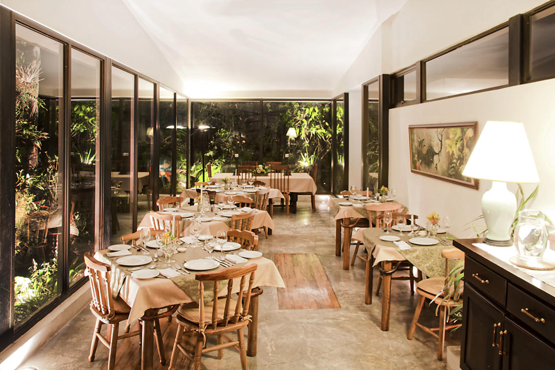 The Bromelia Restaurant Is a beautifully appointed space with floor to ceiling glass walls overlooking the courtyard garden. At night the garden is lit to reveal a beautiful outdoor sculpture and a living wall with a variety of highland orchids and bromeliads. We serve a selection of European and traditional Costa Rican dishes with locally sourced produce wherever possible.