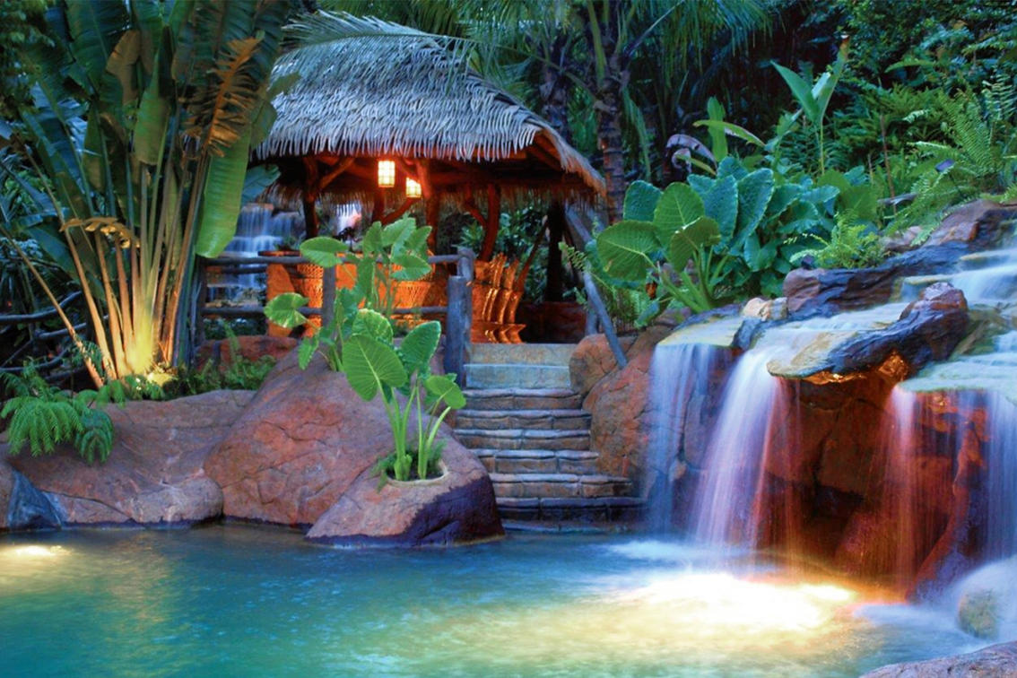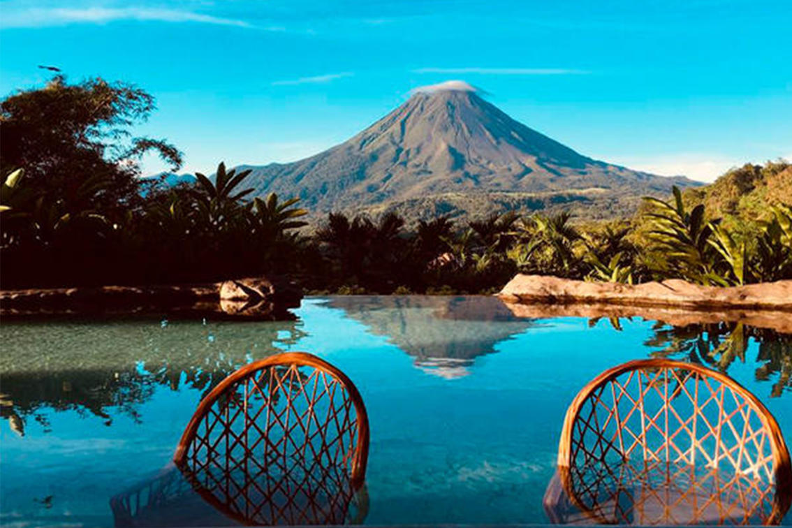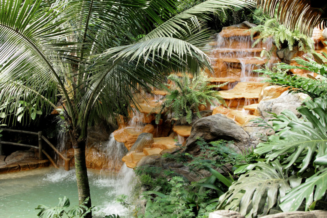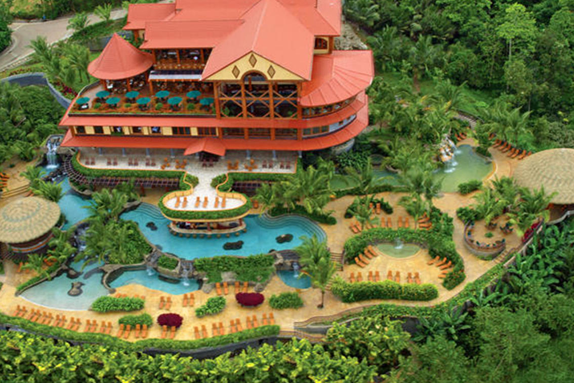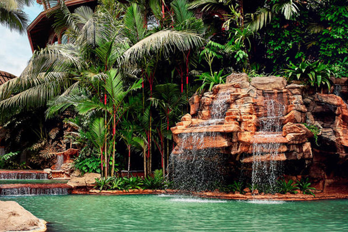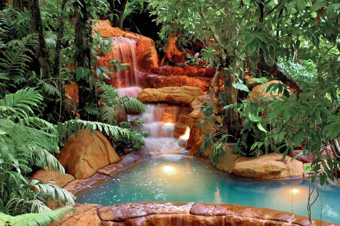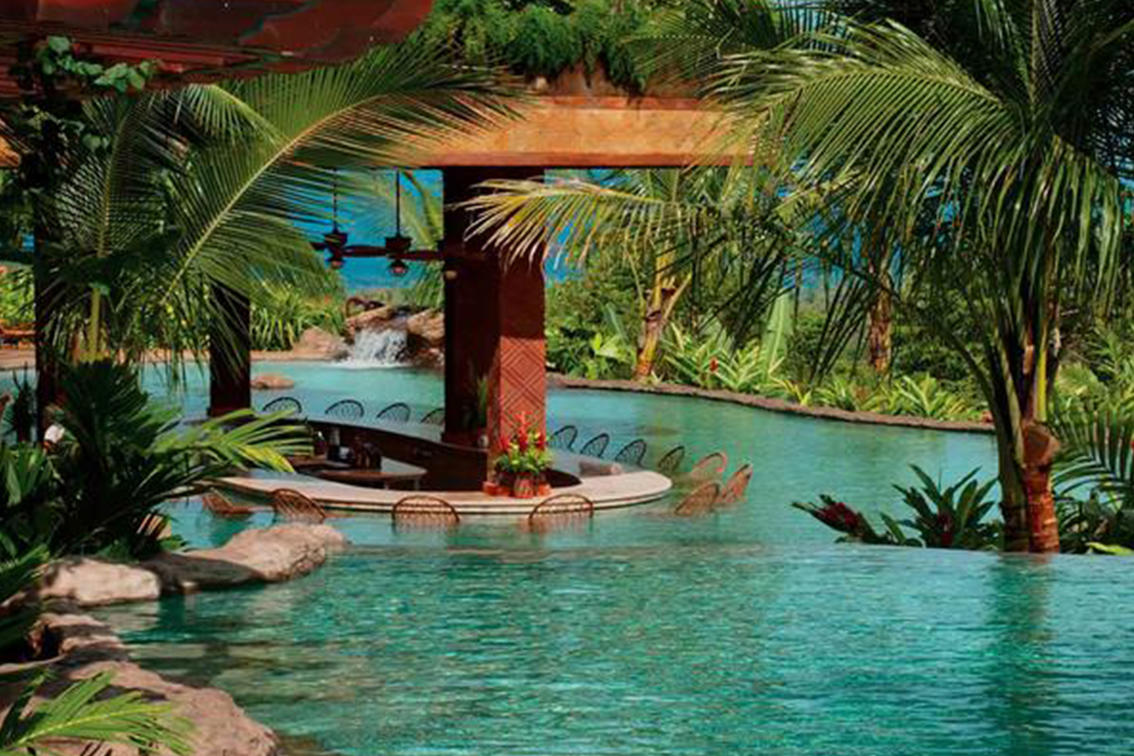Located at the base of the reception building, this enchanting montage of hot spring lagoons and chlorinated pools hosts our ever popular Las Lagunas Swim-Up Bar where you can enjoy a delicious tropical drink and a great view of the Volcano. In this area you can explore two acres of lush landscaping and an assortment of multi-level sun and shade terraces surrounding twelve pools all with cascading waterfalls. Eight of the pools are fed directly by our hot mineral springs and the other four are chlorinated but heated to comfortable temperatures for those hot, sunny days. These pools range in temperature from 86°F to 103°F.