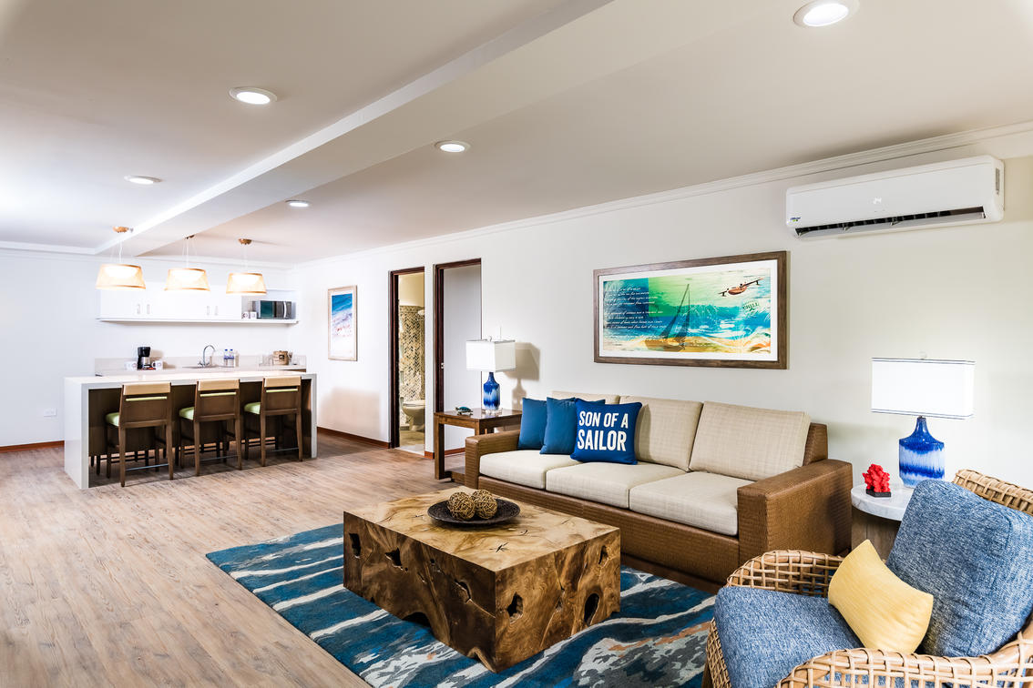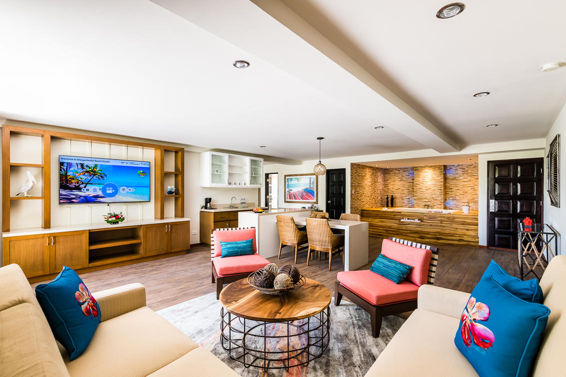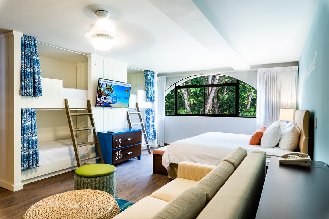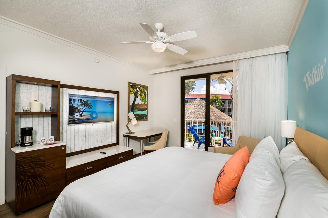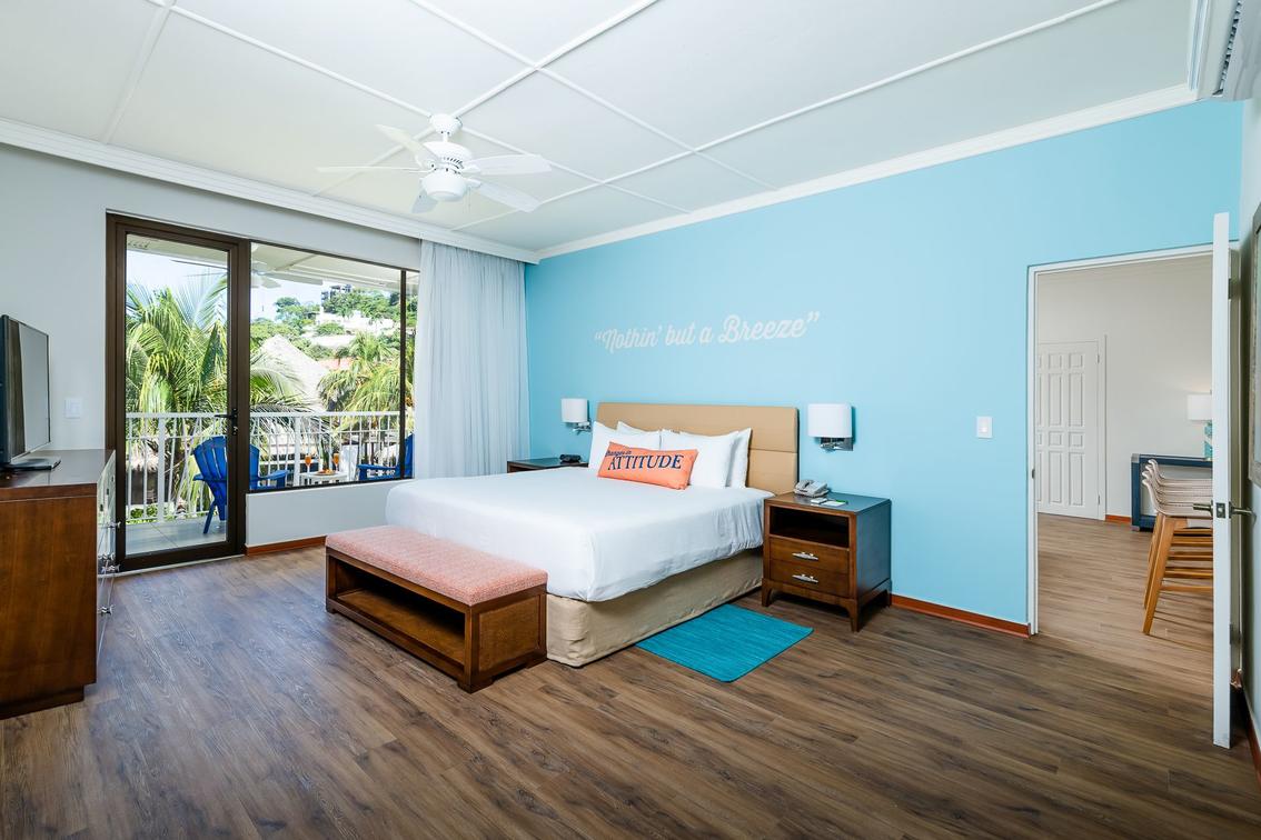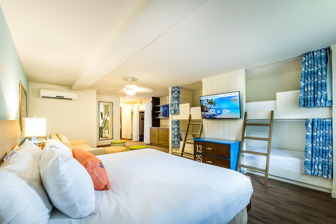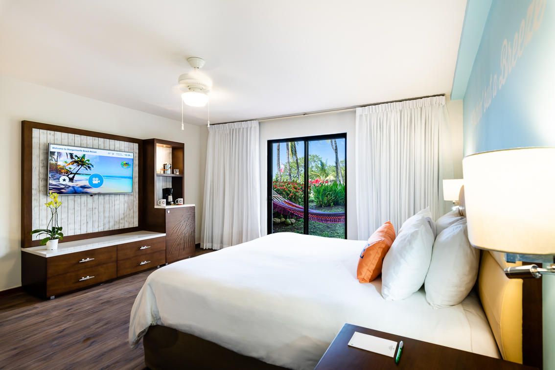 • Plush bedding and Margaritaville casual lux decor