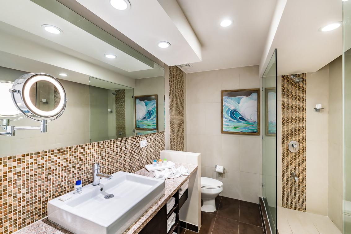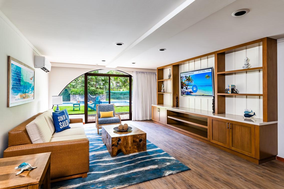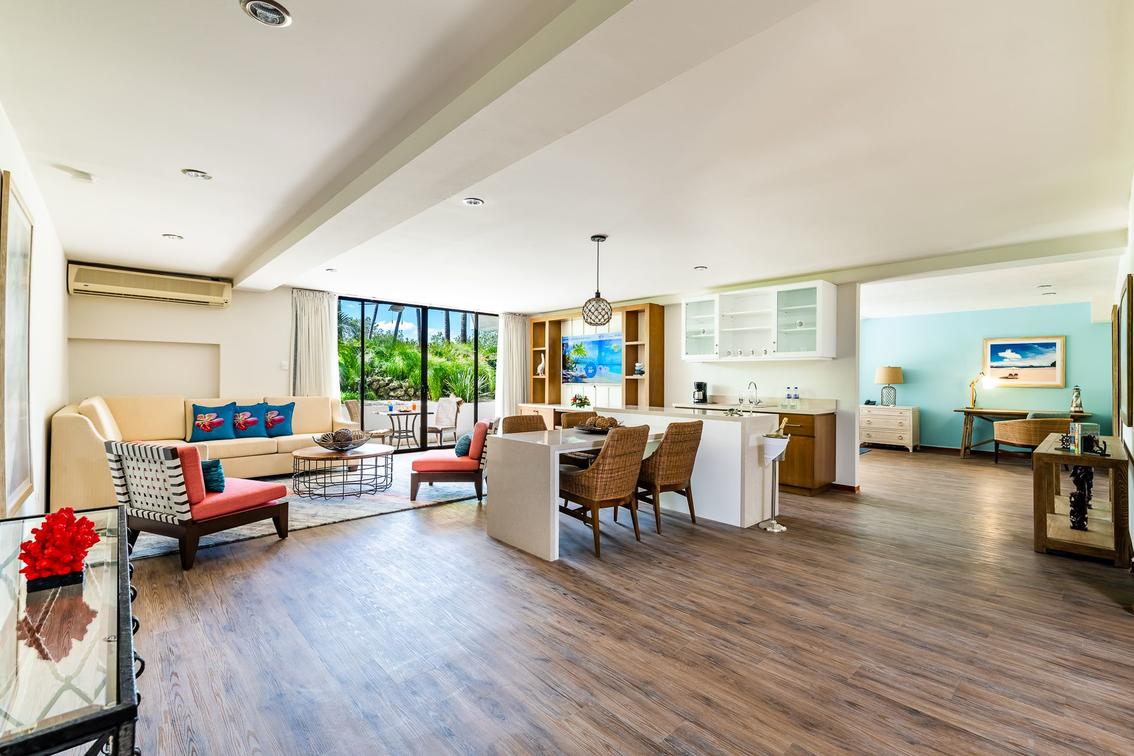 This room includes a private balcony, jacuzzi, living room,