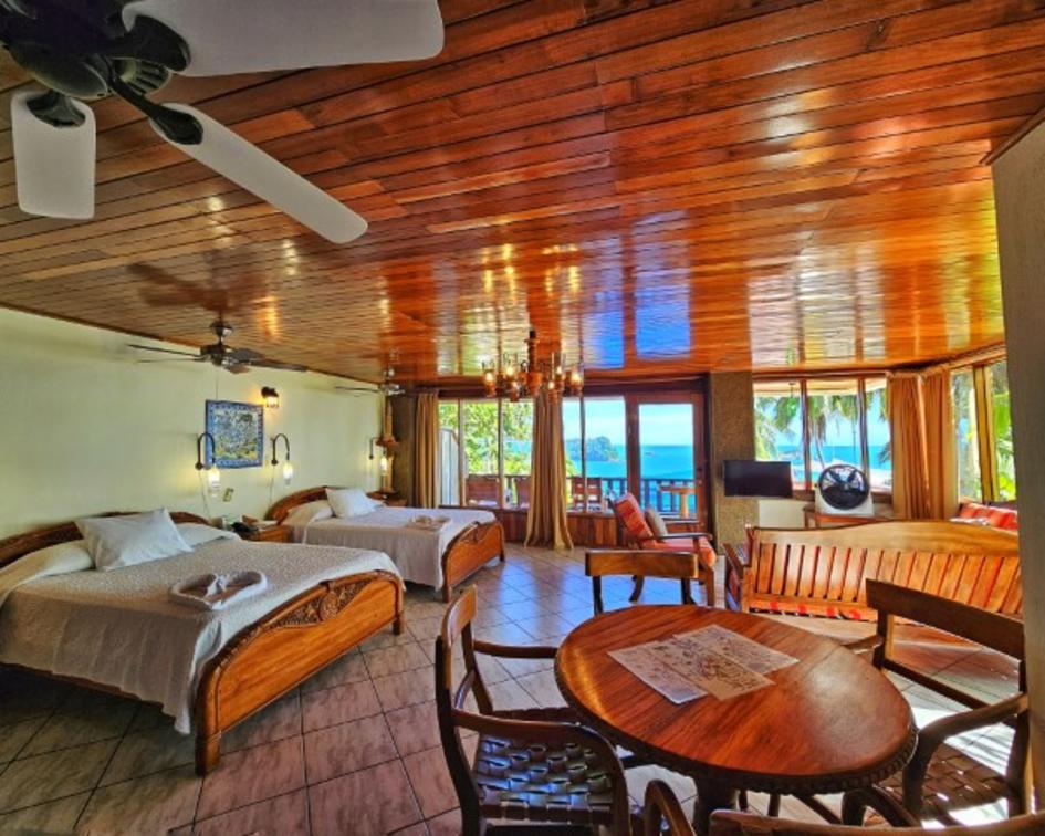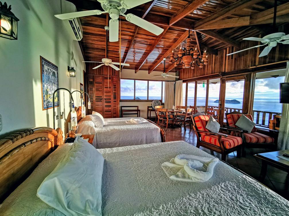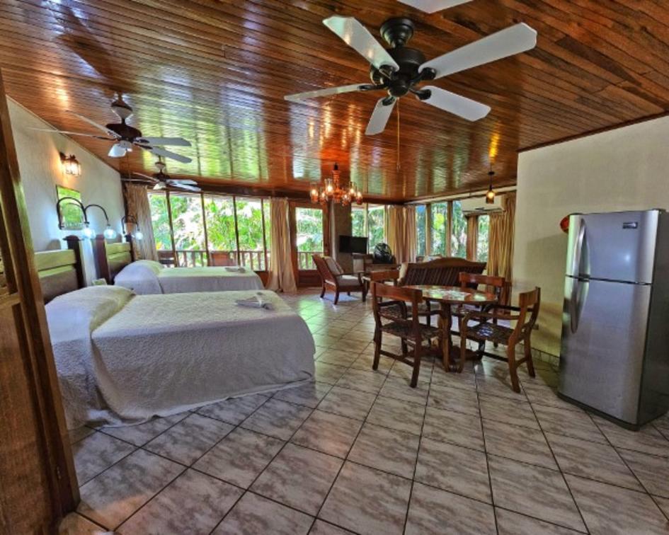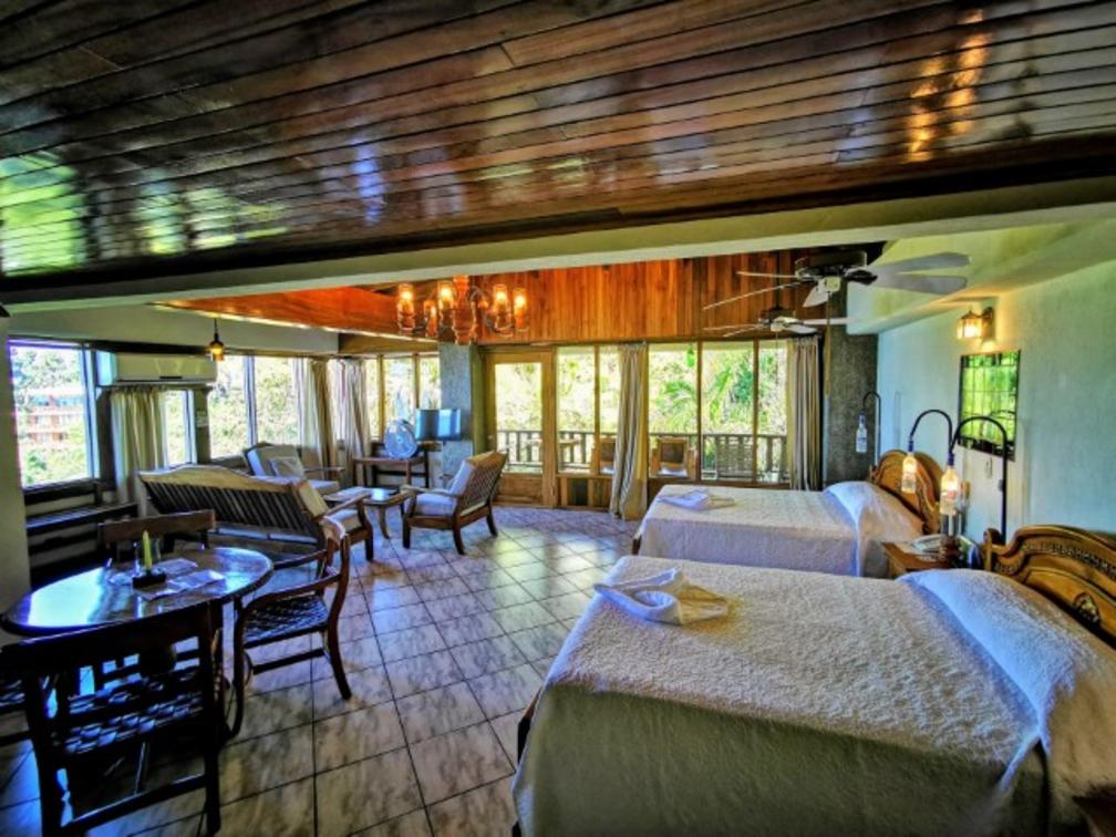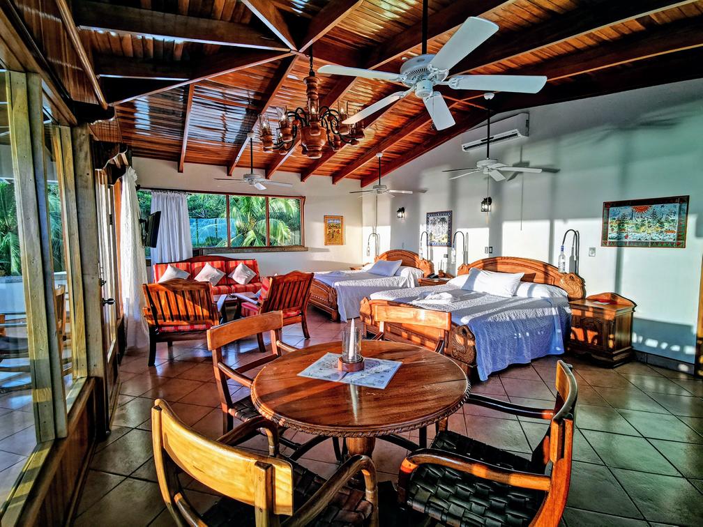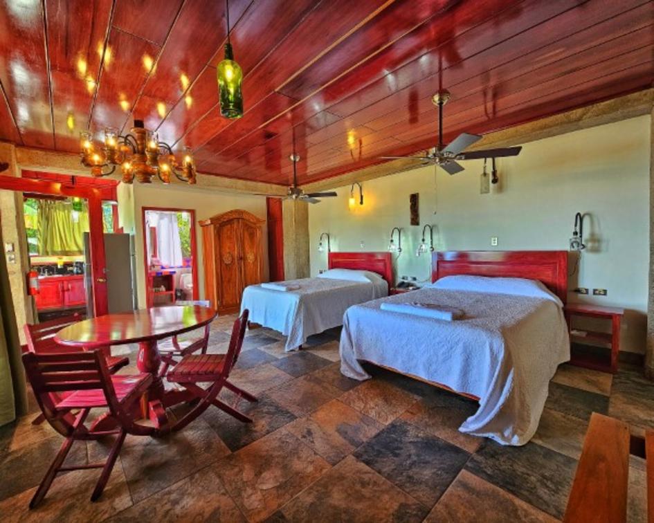 The equipped kitchen allows you the comfort of preparing your own meals. The private balcony is a serene spot to appreciate the jungle's beauty and breathe in the fresh air. The room features two large queen beds, providing a restful sleep and can accommodate up to 4 people, offering space and comfort for everyone.