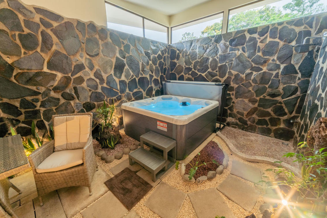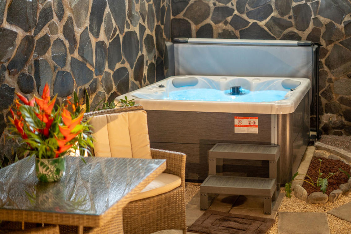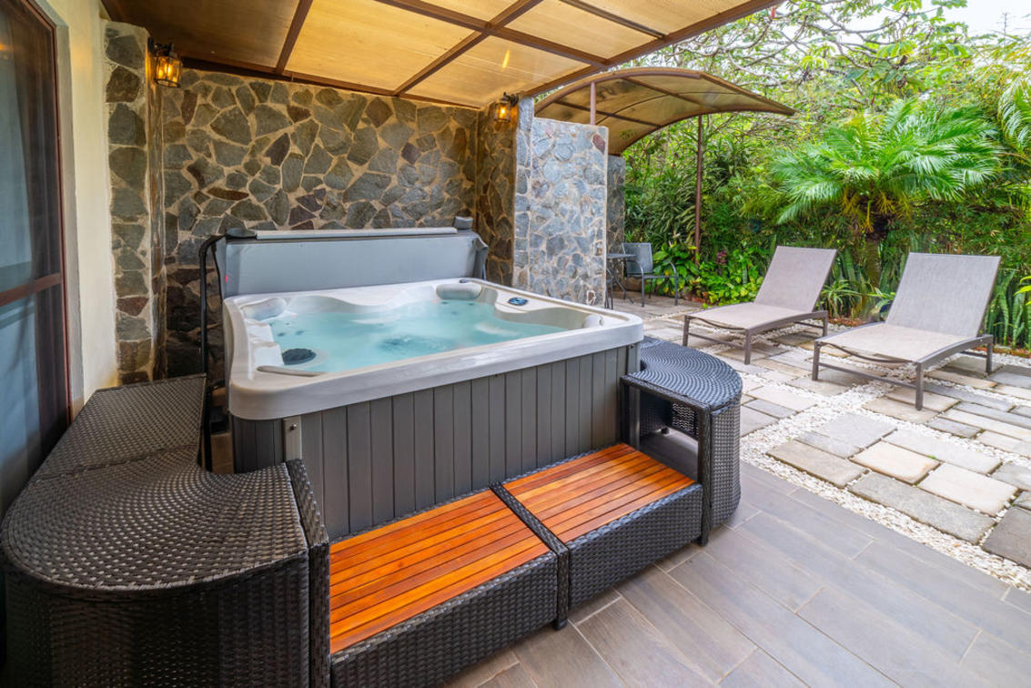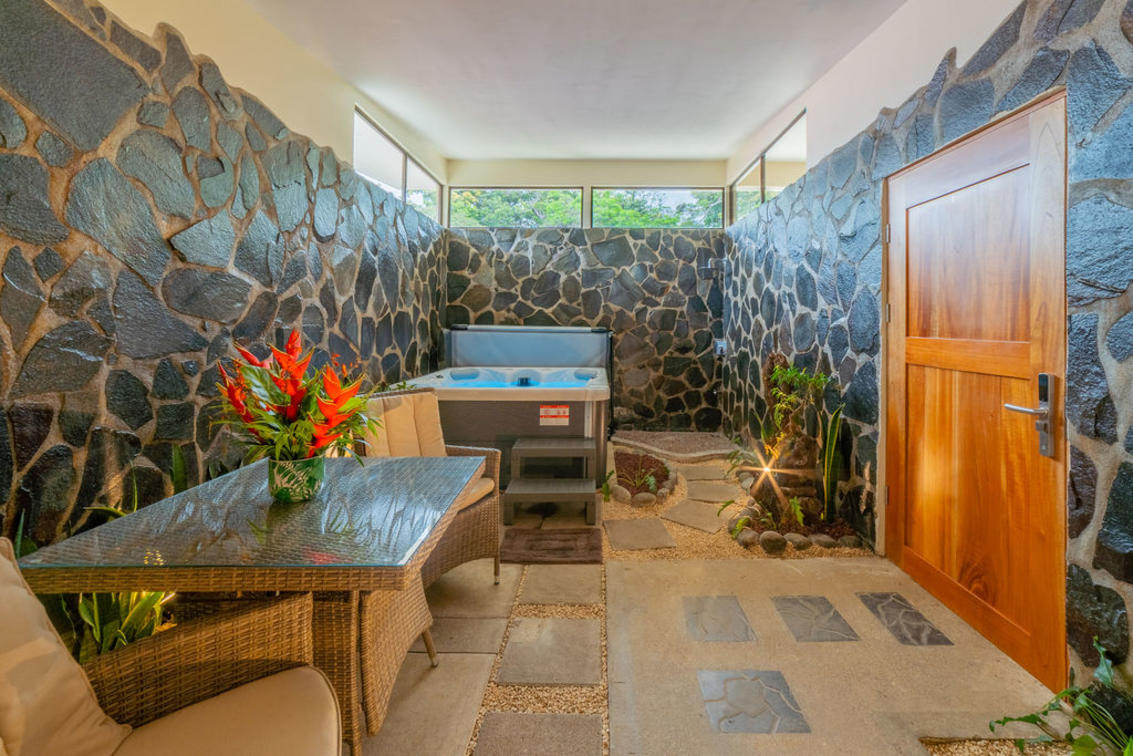 Private jacuzzi and Terrace with outdoor shower. A/C, mini fridge, complimentary minibar and free daily refills if the guest wishes (includes chips, peanuts, beers, soft drinks, water, juices, and wine), Free In-room Wi-Fi , 50” Cables Smart TV, Free Netflix Service, Telephone , Safe Box, Coffee Maker, Private Bathroom with Hot Water , Free Toiletries, Hair Dryer ,Wall Lighted Loupe Mirror, Bathrobes , Iron and Ironing Board (under request) , Hypo-Allergenic Bedding , Blackout Curtains , Daily Housekeeping and turn down service in the evening, Complementary laundry service. Non Smoking.