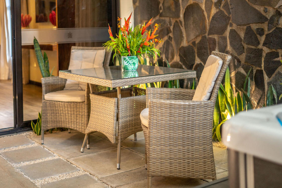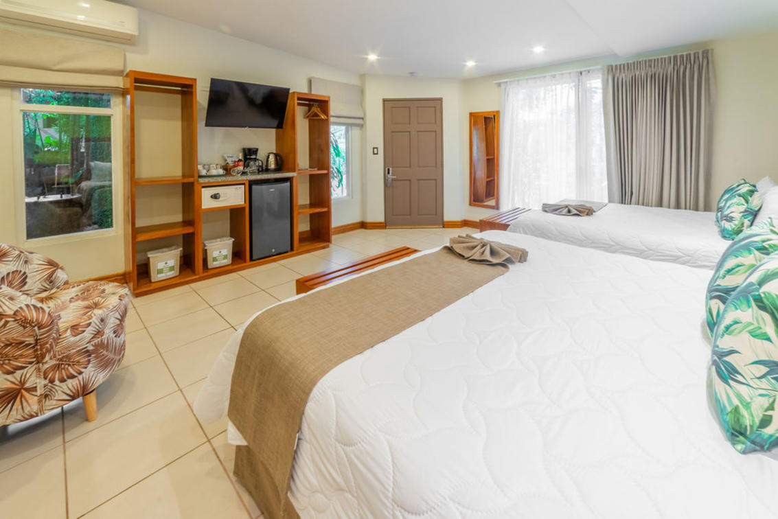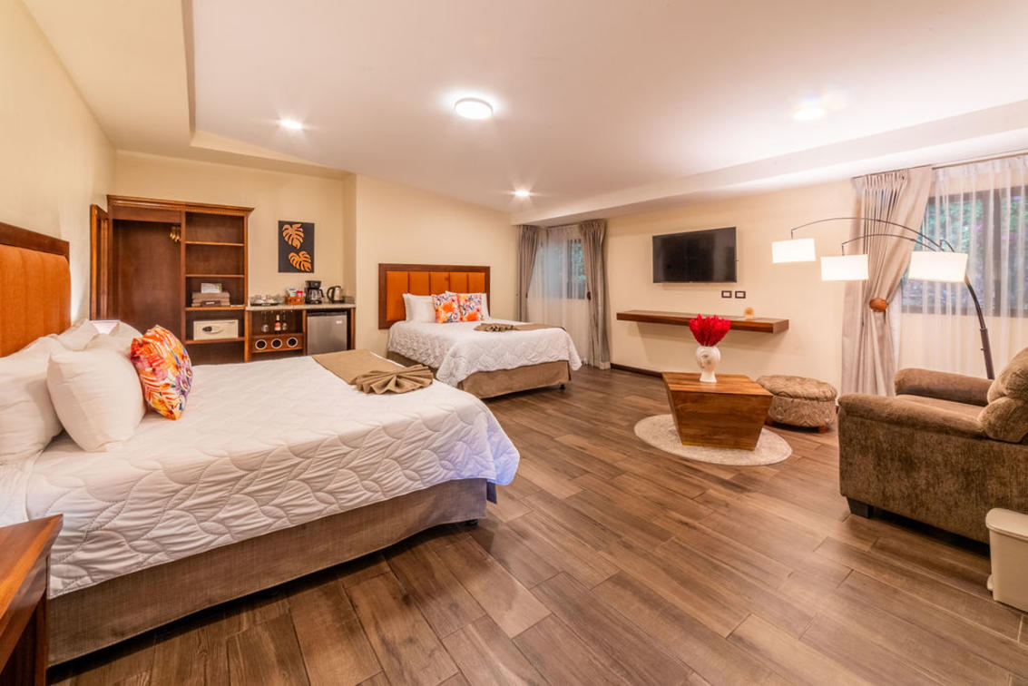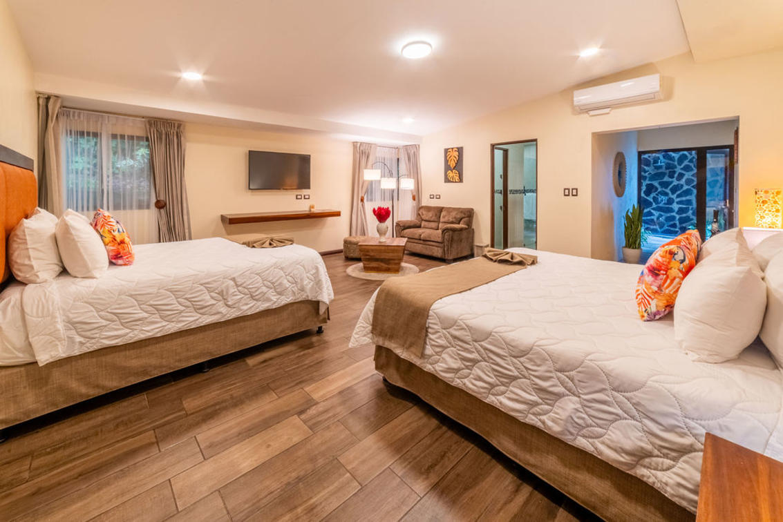 Private jacuzzi and Terrace with outdoor shower. A/C, mini fridge, complimentary minibar and free daily refills if the guest wishes (includes chips, peanuts, beers, soft drinks, water, juices, and wine), Free In-room Wi-Fi , 50” Cables Smart TV, Free Netflix Service, Telephone , Safe Box, Coffee Maker, Private Bathroom with Hot Water , Free Toiletries, Hair Dryer ,Wall Lighted Loupe Mirror, Bathrobes , Iron and Ironing Board (under request) , Hypo-Allergenic Bedding , Blackout Curtains , Daily Housekeeping and turn down service in the evening, Complementary laundry service. Non Smoking.