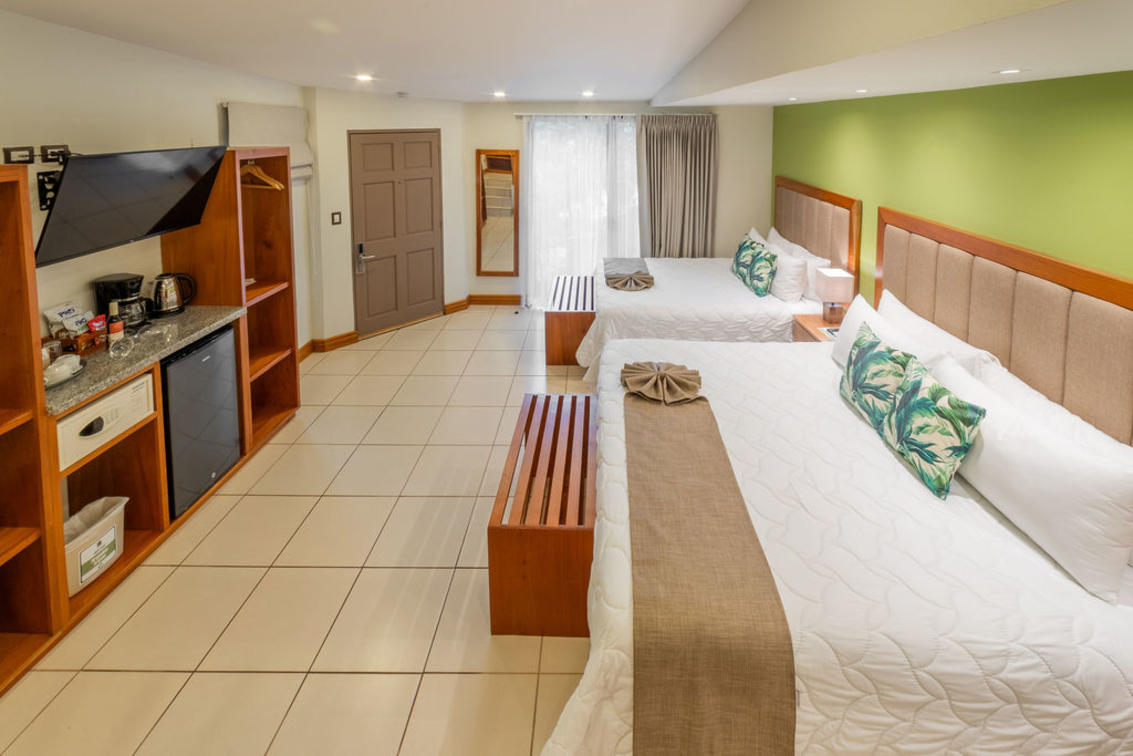 (24 m2) Rooms located in ground floors next by the gardens and parking areas, with easy access but not views. 1 King or 2 Queen size beds.