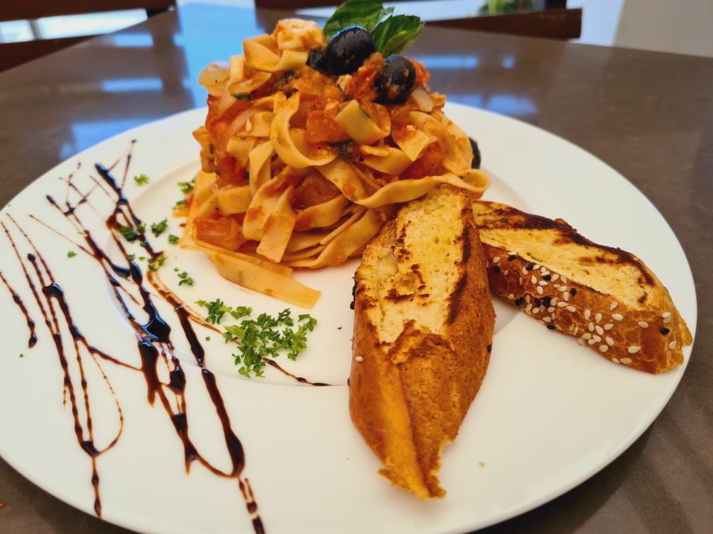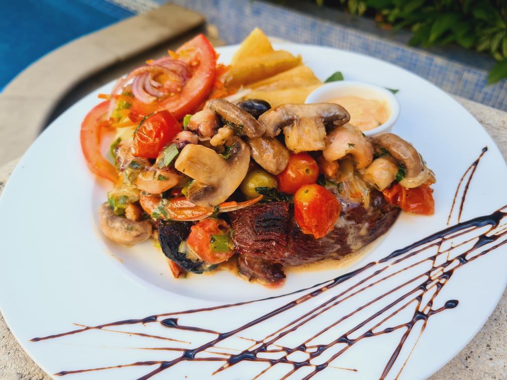 The restaurant / coffee shop serve all kind of foods, since breakfast through diner, including cocktails, liquors and snacks.