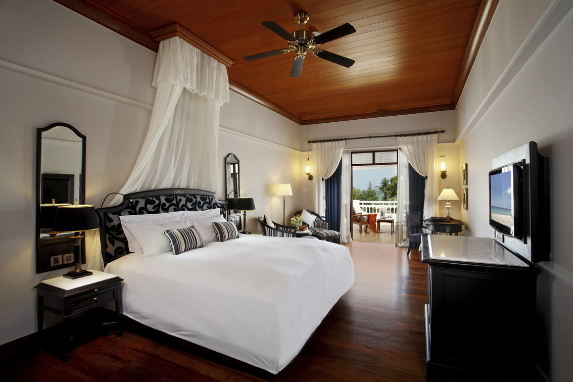 Colonial influences meet modern-day comforts and soothing views are to be had of the swimming pools or the gardens with the Deluxe rooms, each designed to evoke the spirit of the 1920s. The Deluxe rooms offer 37 square metres of living space, including a furnished balcony and interiors decorated in cream hues and accentuated by fine wood, high ceilings and rich fabrics. Perfect for couples or small families, accommodating up to 3 adults or 2 adults and 1 child, the Deluxe rooms feature the choice of a king-size bed or twin beds, a work desk, and bathroom with shower and bathtub in most rooms.