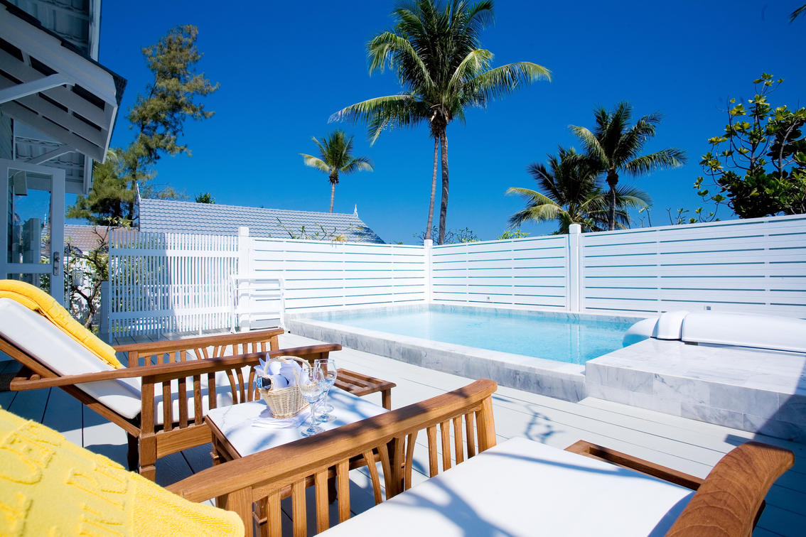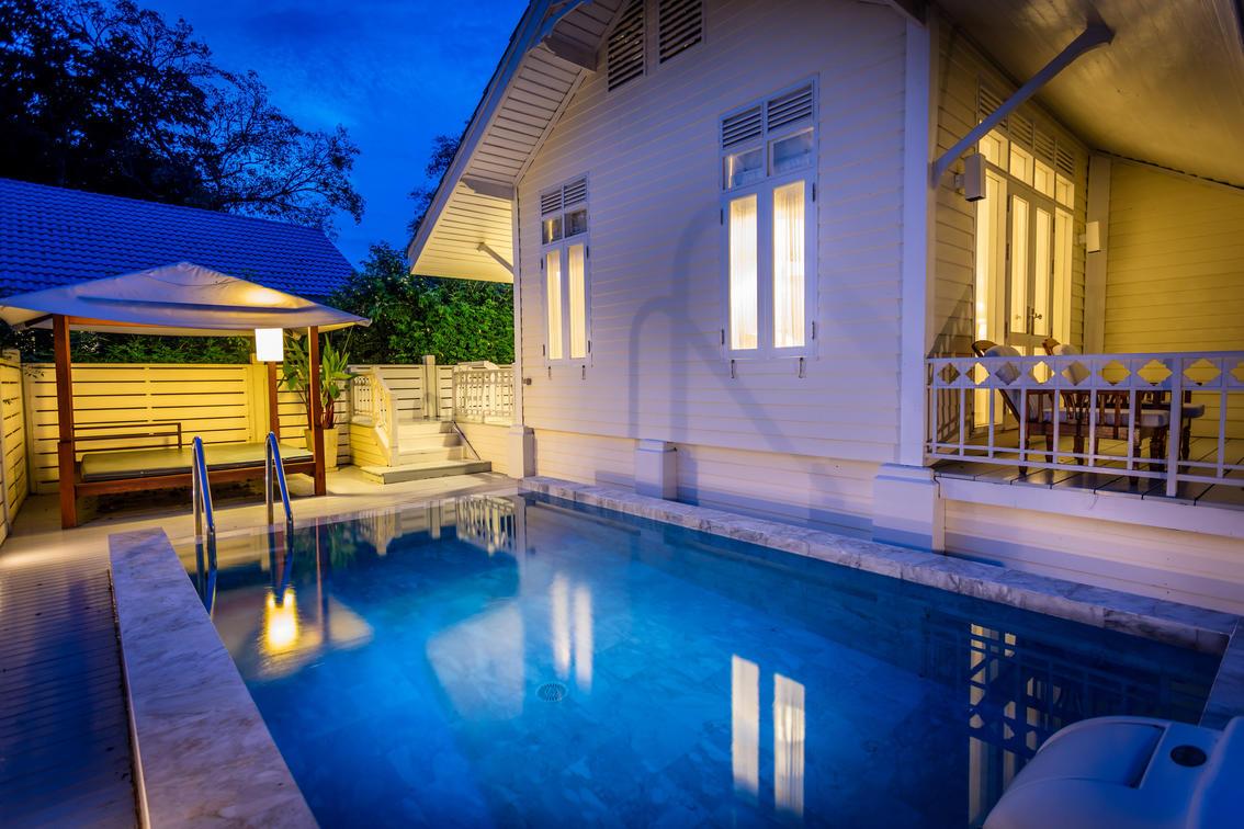 Gracefully designed to a colonial décor that blends soft colours, wood accents and high ceilings, each of the 16 Deluxe Pool Villas is a tranquil oasis with living areas of 76 square metres. Surrounded by lush gardens that enhance the feeling of seclusion, your Deluxe Pool Villa has a spacious terrace with a plunge pool, perfect for cool dips and to unplug in grand style. The bedroom has the choice of a king-size bed or twin beds, thereby sleeping up to 2 adults and 1 child, and the bathroom has a shower and freestanding bathtub.