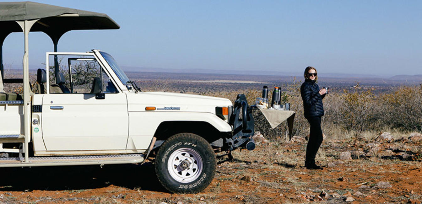 A game drive can be enjoyed in the morning, which then includes a coffee stop, or in the late afternoon with a sundowner, both overlooking the endless Kalahari landscape. You will be able to view over 35 different species of game and more than 95 species of birds. Should you wish to learn more about cattle farming in Namibia, this can gladly be arranged as well.