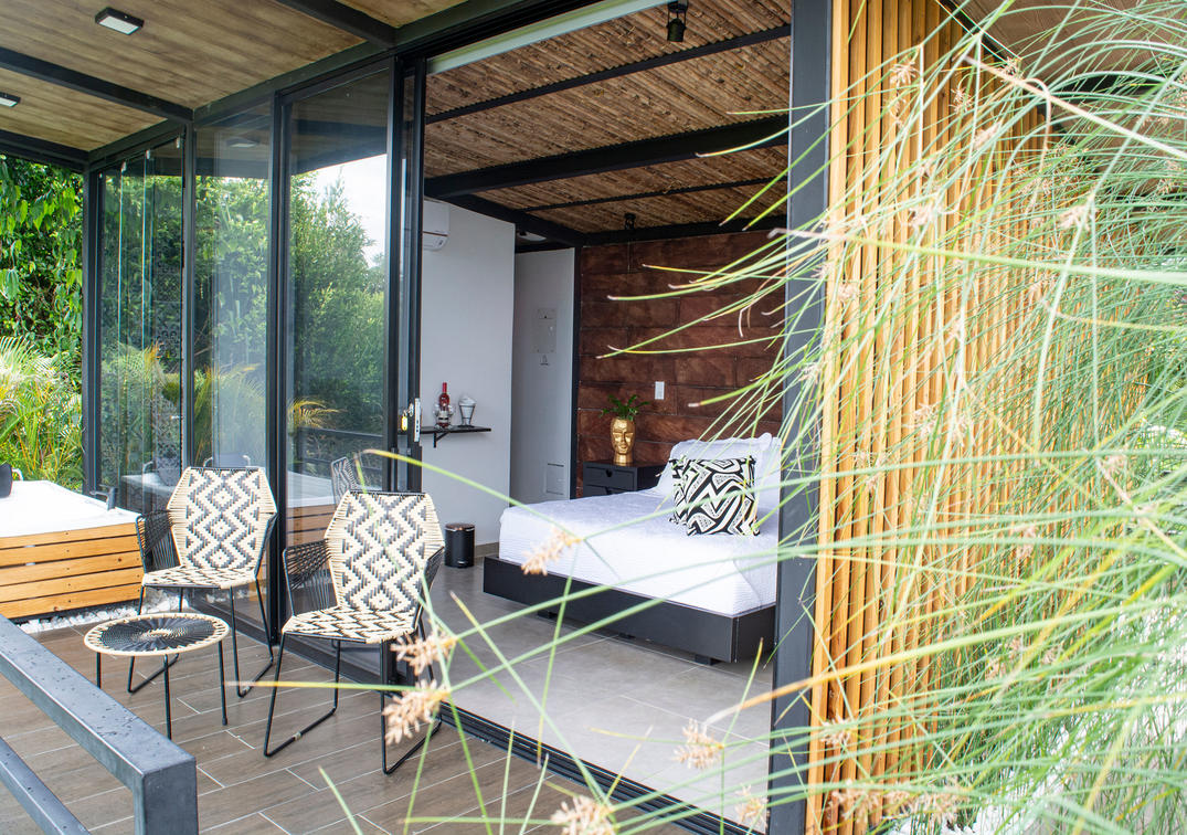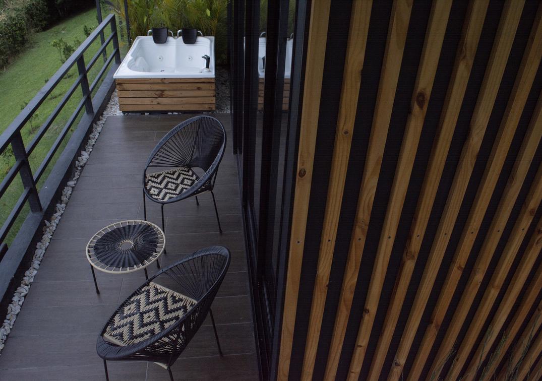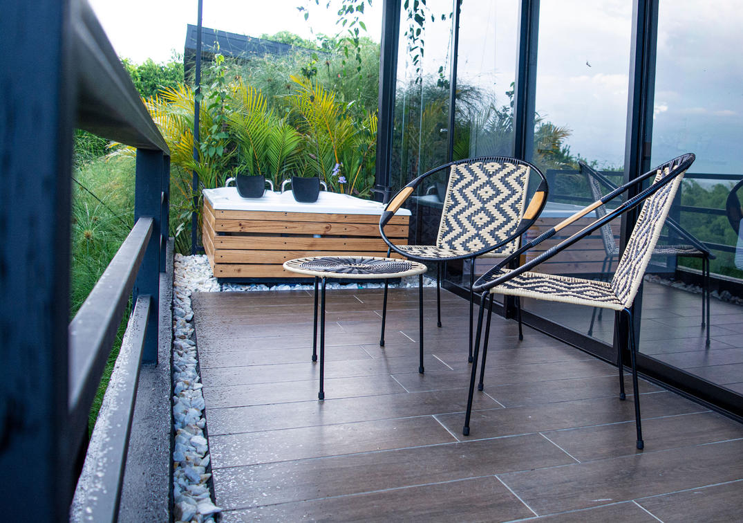 balcony with table and chairs,