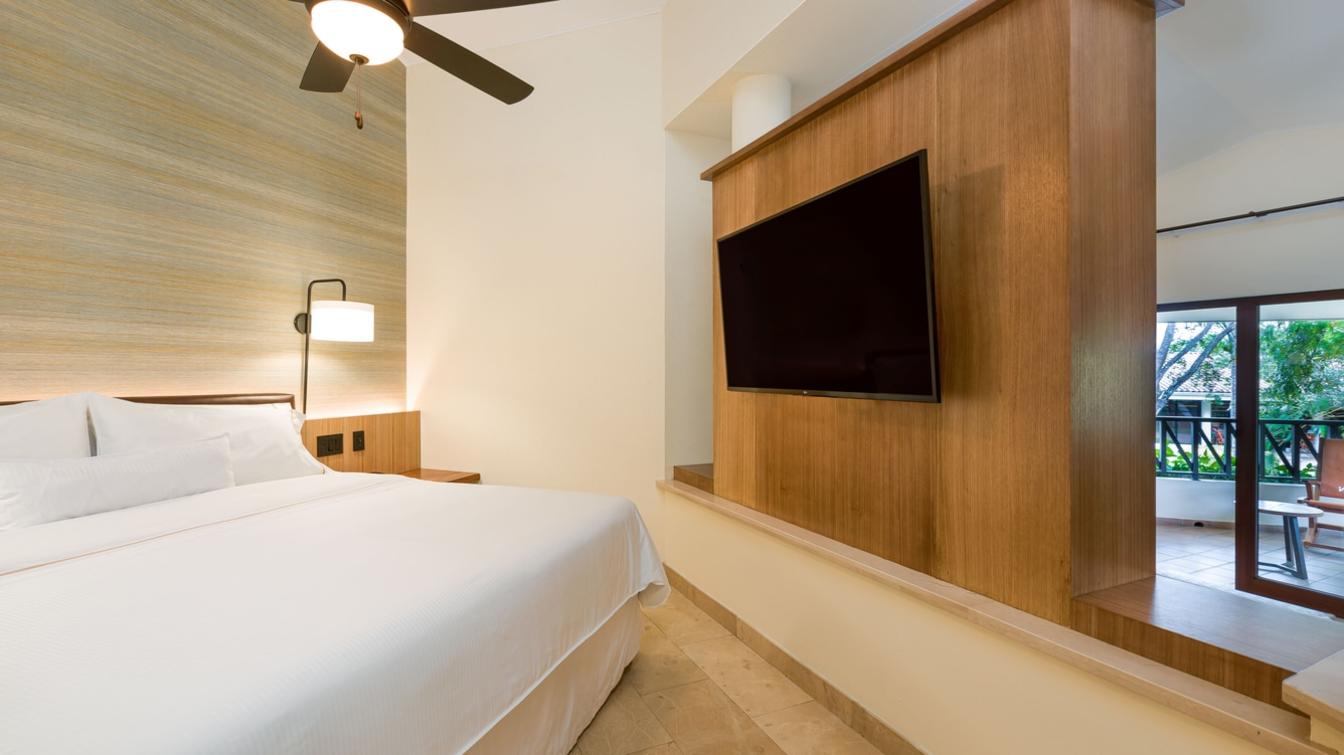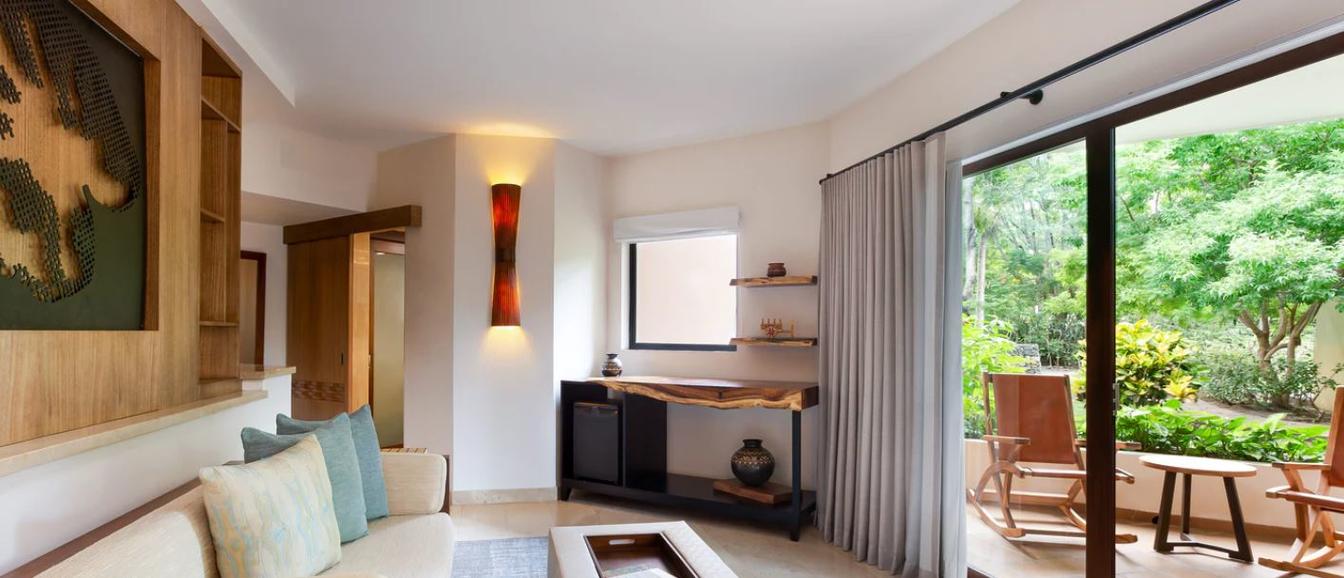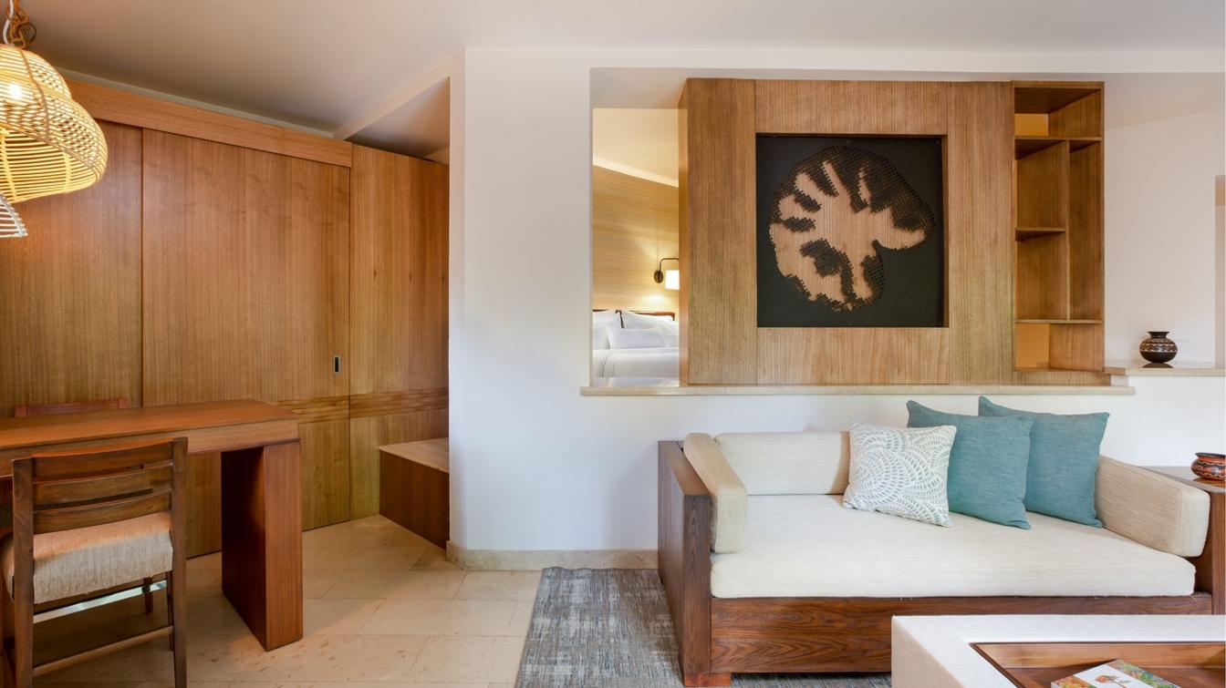 Freshly designed rooms with wood accents and a preferential location by the main pool. These junior suites ofer a living area with a pullout sofa bed, extra closet space and beautiful wood furniture in the terrace/ balcony including rocking chairs.
