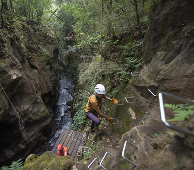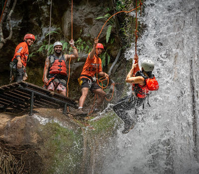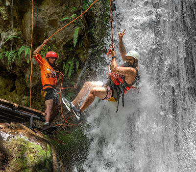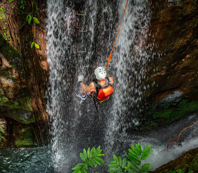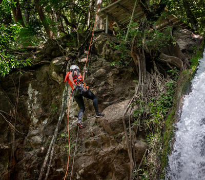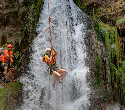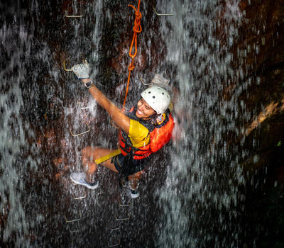 Rappel and Rock Climb through a Waterfall