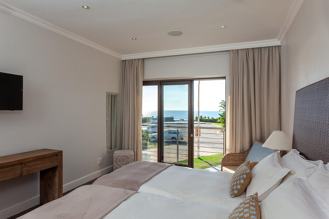 A Self-Catering unit 20m from the beach. With beautiful sea -views from the bedrooms, ideal for family getaways. The Villa has 3 bedrooms with en-suite bathrooms upstairs. The kitchen, dining room and lounge are downstairs and opens up in a garden with barbeque facilities. The unit also has a double garage.
