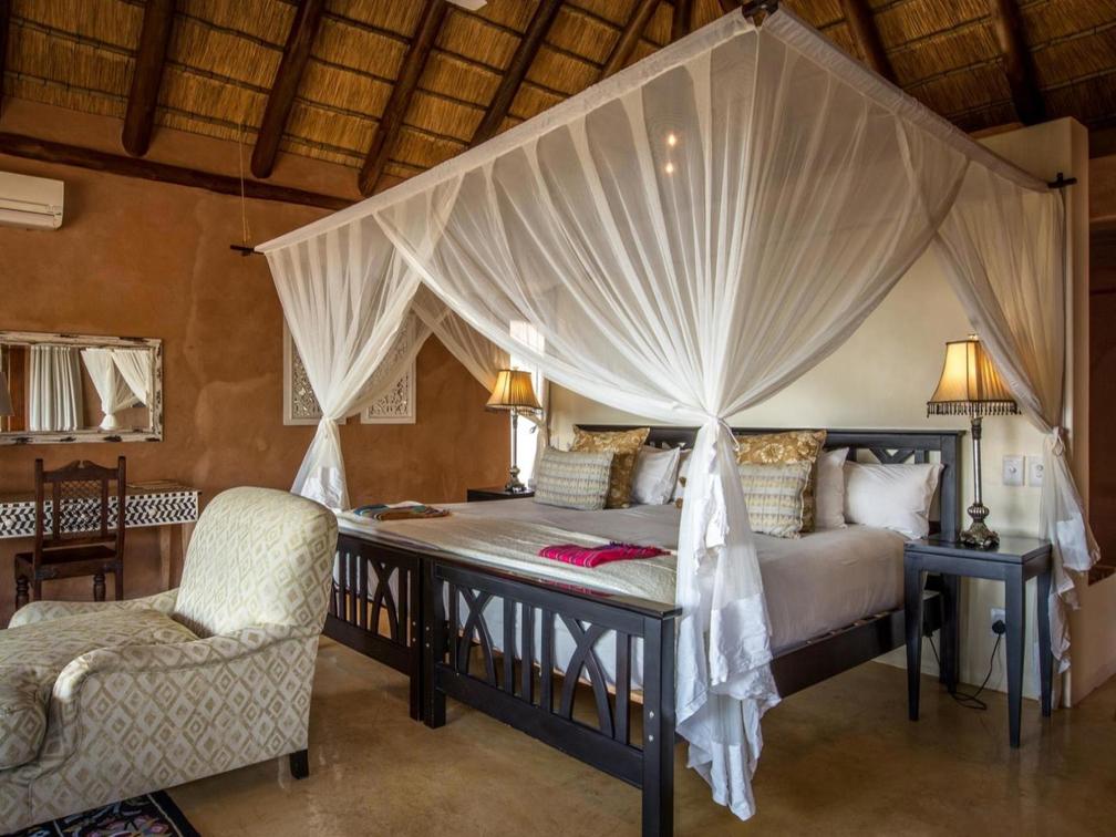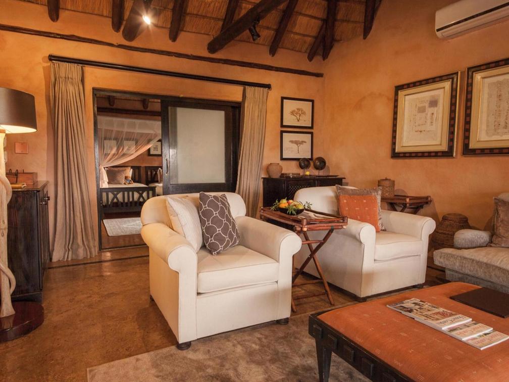 A beautiful and spacious suite featuring a private deck with a hammock overlooking the natural bush landscape. The suite boasts a minibar, air conditioning, a full en-suite bathroom with an indulgent bath, and indoor and outdoor showers.