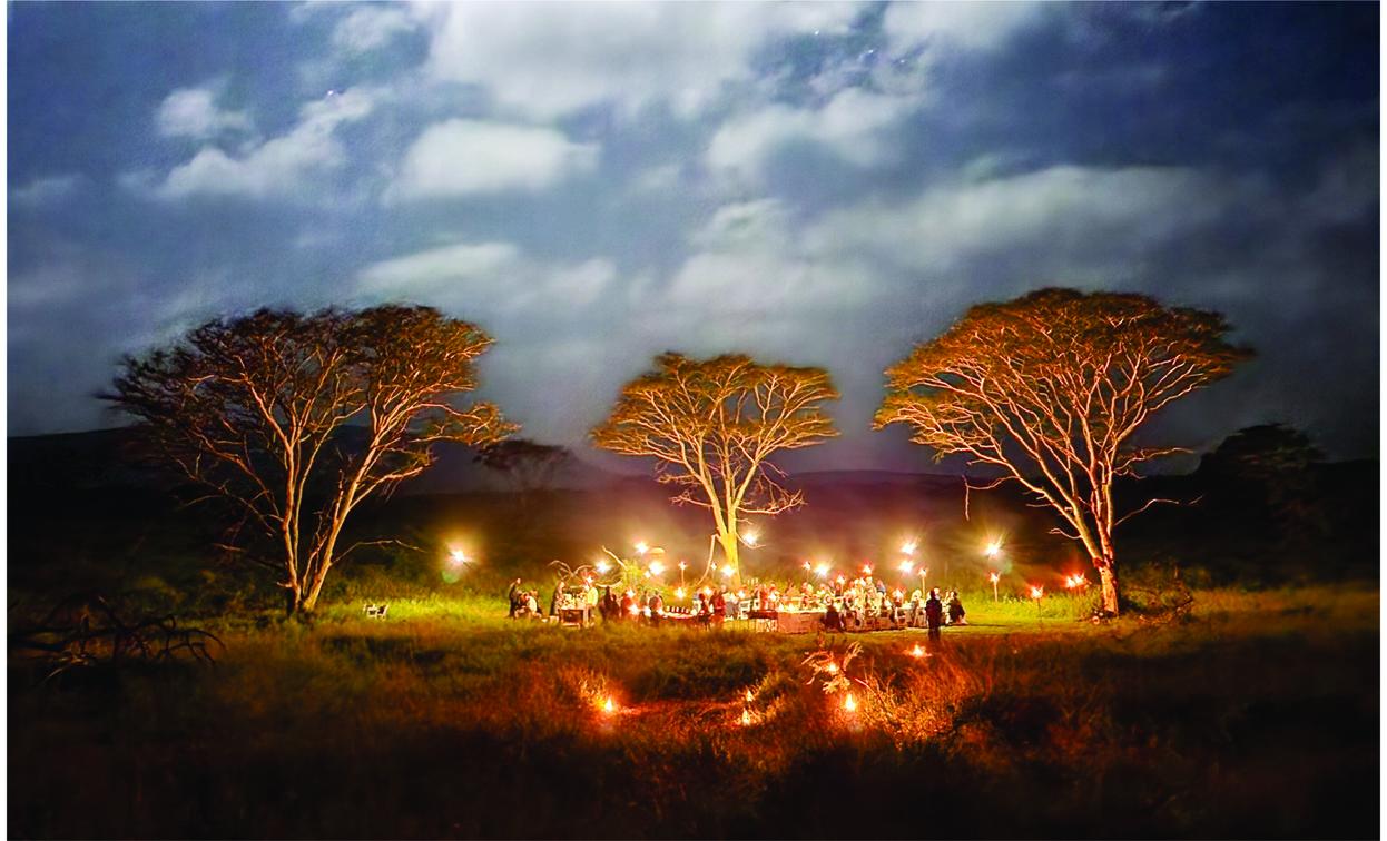 Dinner under the stars, surrounded by the warmth of a crackling fire and under the protection of a Monkey Black Thorn.
