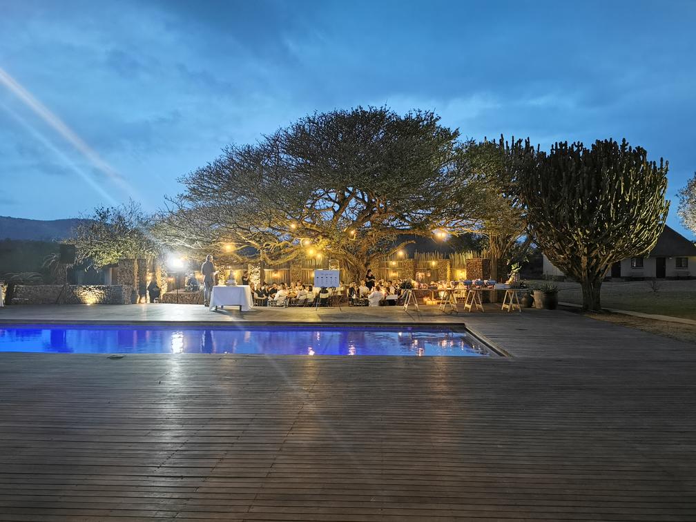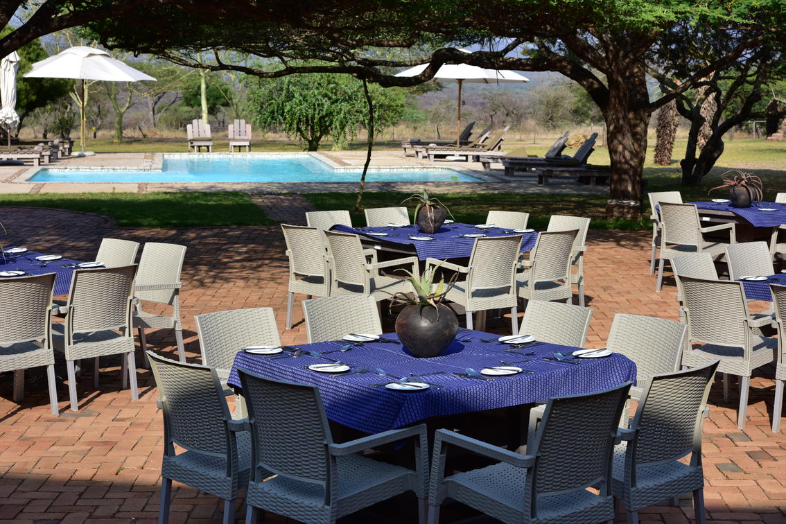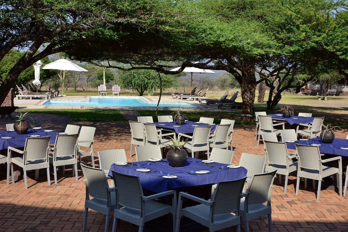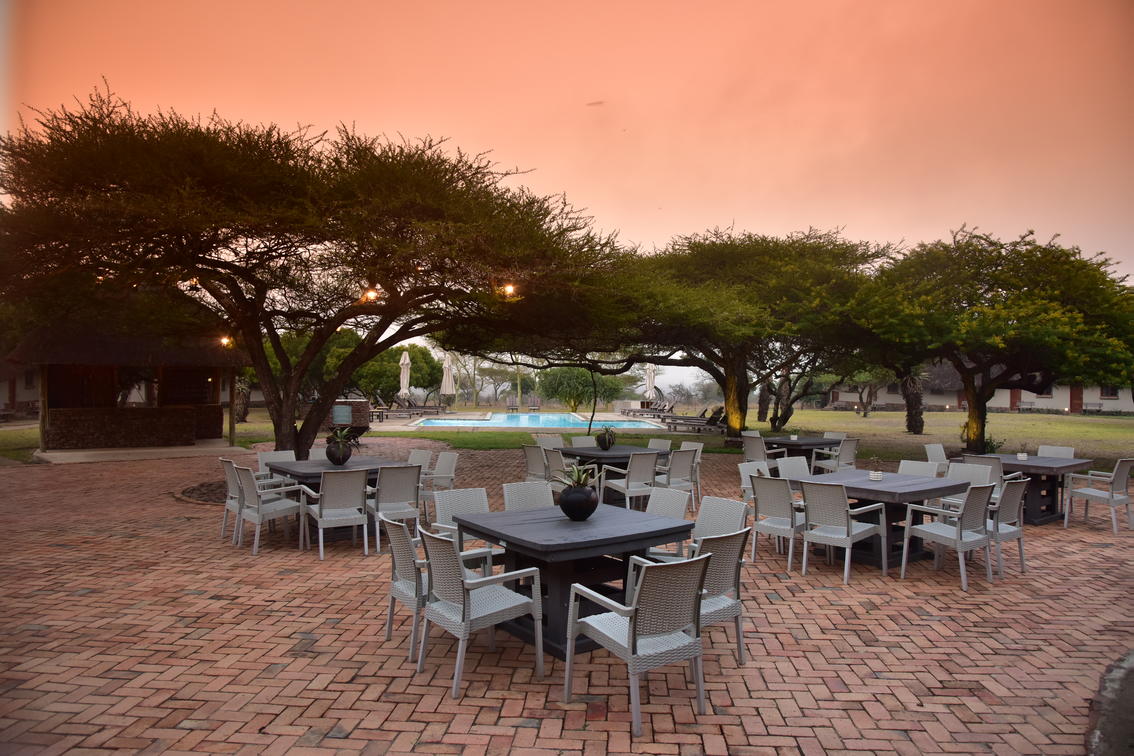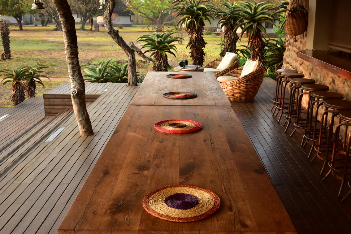 Safari Lodge offers an area where you can watch the sun set while you enjoy sundowners. Meals can be served both inside and outside. The bar lends itself to both inside and outside guests. Firebowls keep you nice and cozy on cool evenings.