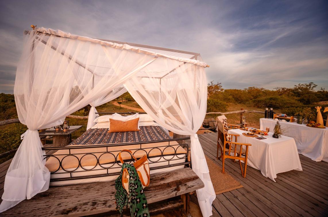 You’ll arrive before sunset to watch the changing colours of evening and sip a sundowner. The African bush fairytale continues with a five-course dinner served to you by a personal chef at an intimate table for two on the platform. Or you can enjoy dinner at the lodge and arrive at your romantic sleep-out venue afterwards. By night, it will be encircled by a ring of golden lantern light.