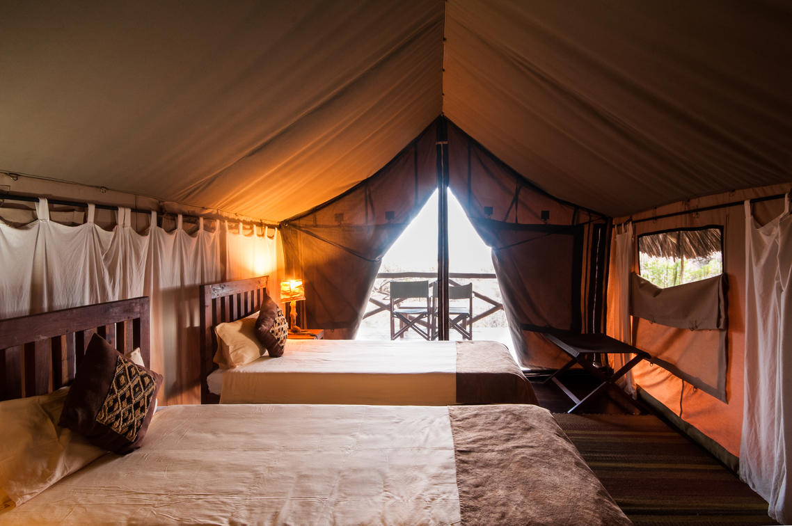 All feature an open deck overlooking the Tarangire Nationalpark and a bedroom, dressing room alcove and an en-suite bathroom with flush toilets, wash basin and hot shower.