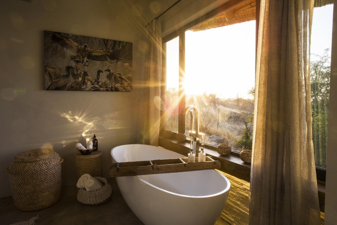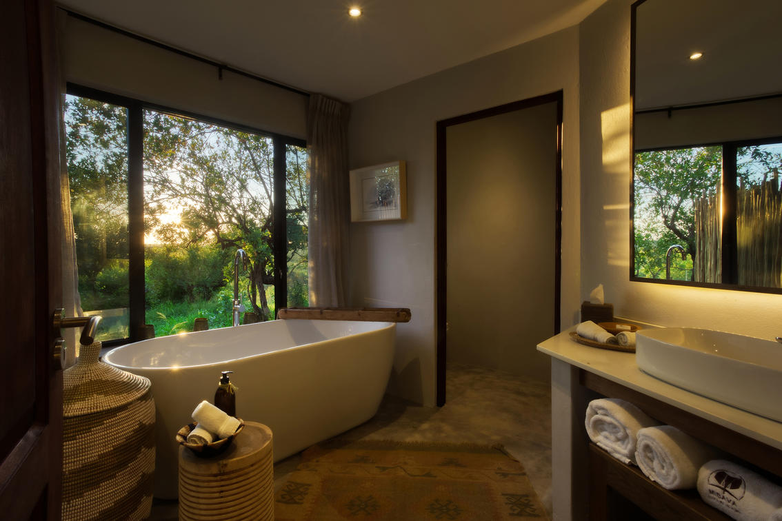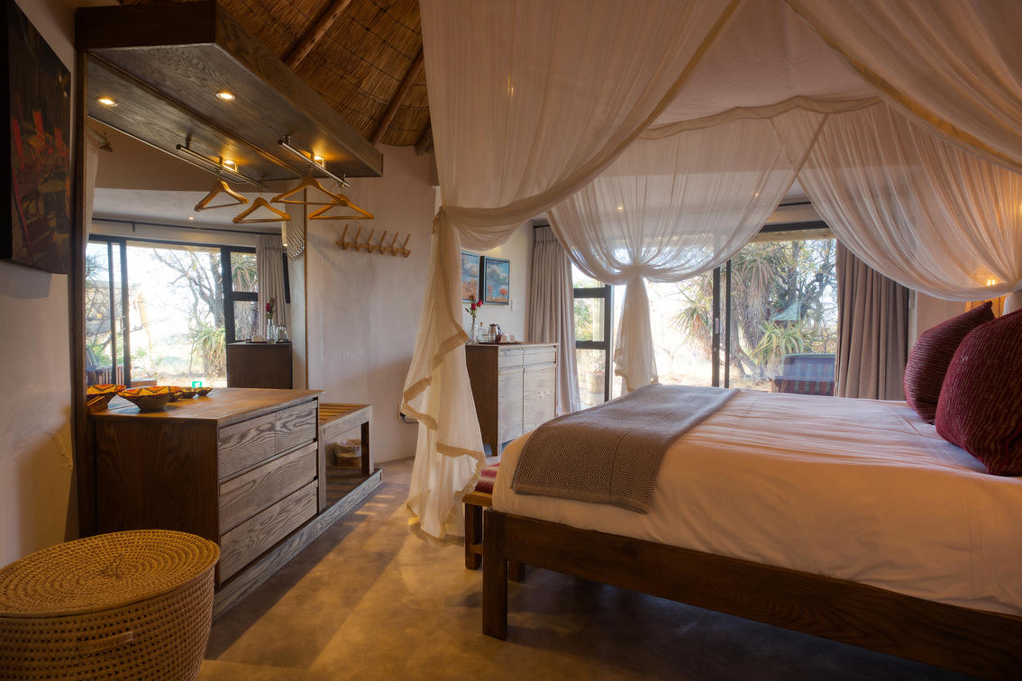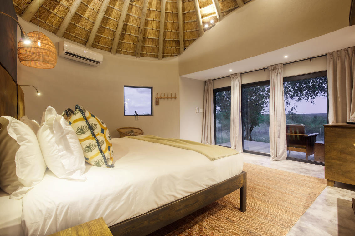 Two luxury and authentic Thatched Chalets accommodate two guests in a private and tranquil setting with amazing views over the Klaserie River and expanse of the Klaserie Private Nature Reserve. Super King sized bed, air-conditioning, ceiling fans, coffee station and minibar are just some of the in-room facilities guests can expect. The Luxury bathroom amenities complete the large en-suite bathrooms which consist of a bathtub with an amazing river view, an indoor and outdoor shower. Each suite has large glass doors opening on to its own private deck equipped with furniture overlooking the river and reserve as well as a private entrance leading to the swimming pool, main lounge and dining areas. Misava Safari Camp can be booked as exclusive use for 12 guests or guests can book per room, as required. Both River view rooms are ideal for honeymoon couples as they offer privacy, tranquility and private romantic dinners can be served on their deck.