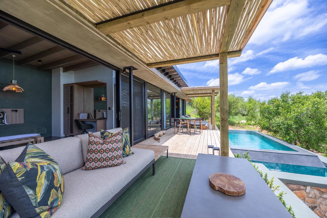 Four luxury and authentic Thatched Chalets accommodate two guests in a private and tranquil setting with amazing views of the naturally wild garden and expanse of the Klaserie Private Nature Reserve. Super King sized bed, air-conditioning, ceiling fans, coffee station and minibar are just some of the in-room facilities guests can expect. The Luxury bathroom amenities complete the large en-suite bathrooms which consist of an indoor shower only. Each suite has large glass doors opening on to its own private deck equipped with furniture overlooking the gardens and reserve as well as a private entrance leading to the swimming pool, main lounge and dining areas. Misava Safari Camp can be booked as exclusive use for 12 guests or guests can book per room, as required.