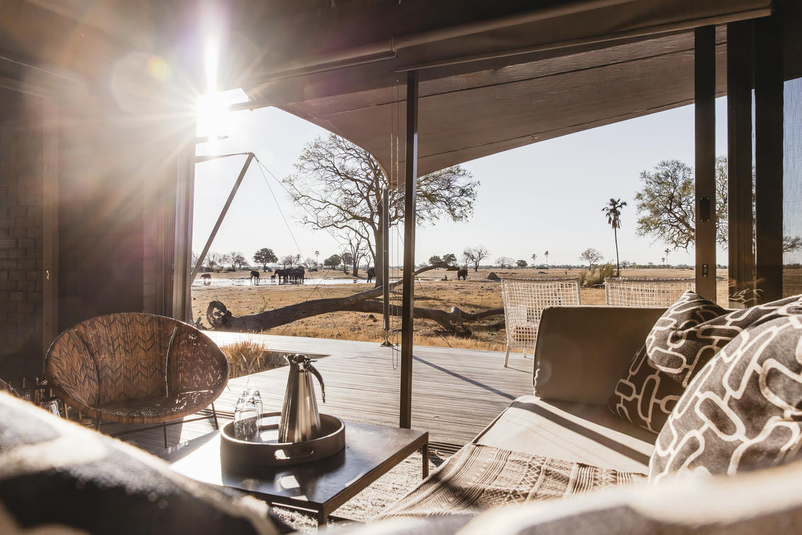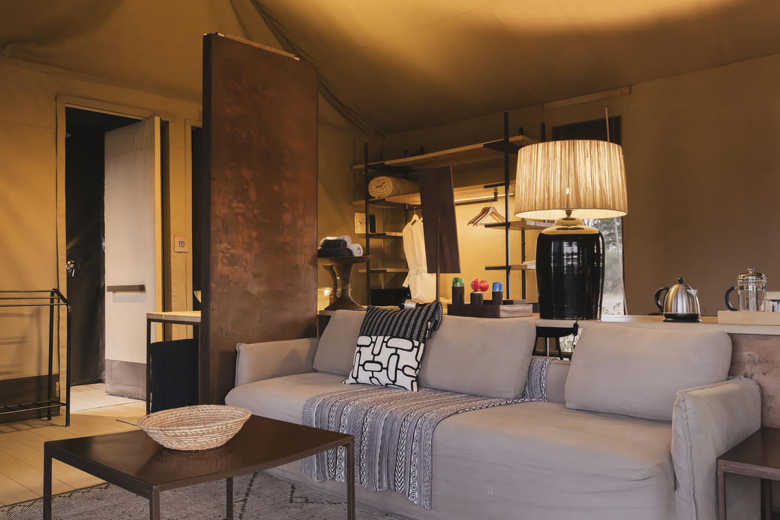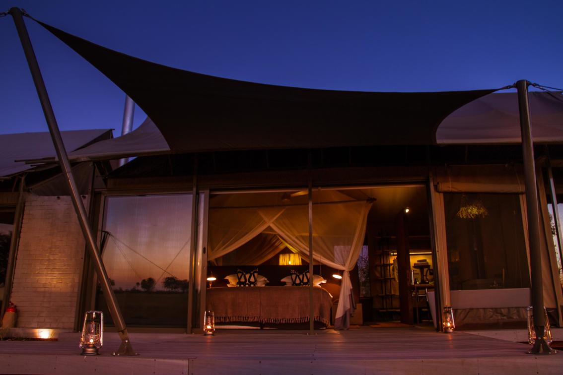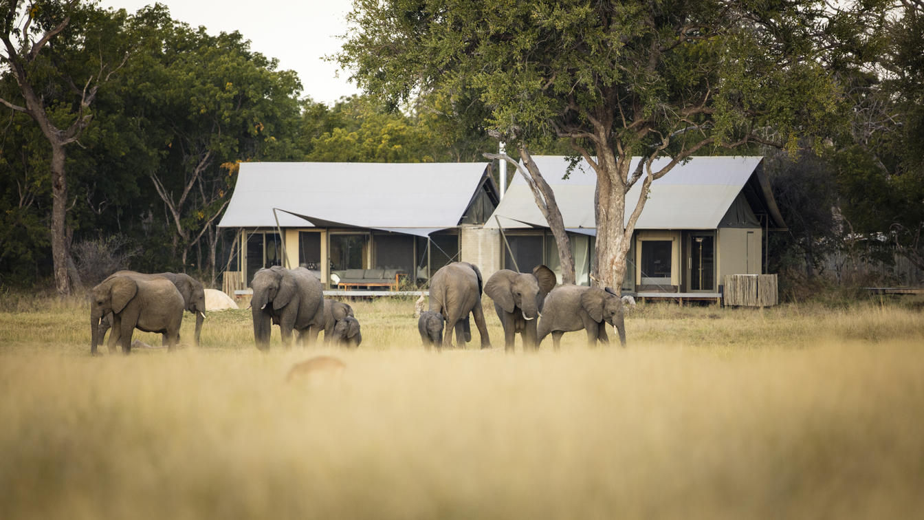 Wilderness Linkwasha's expansive canvas tented accommodations each look out onto the camp's waterhole, and beyond onto a vast plain. Elegant tents, featuring contemporary but timeless décor, nestle under leadwood trees, fronting a waterhole where the wildlife spectacle perpetually amazes and entertains.
