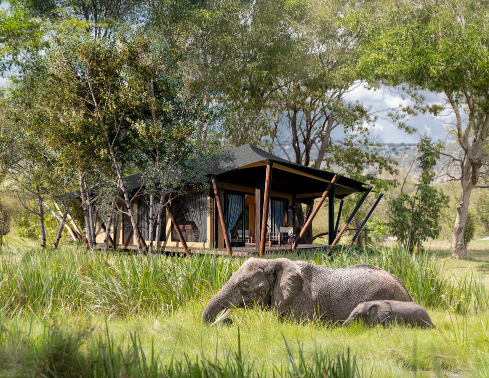 Wilderness Mara offers twelve spacious canvas tents, positioned to maximise privacy and views. Elevated private decks ( a metre to a metre and a half off the ground) offer views over the marsh, drawing wildlife and birds. Each tent includes an indoor and outdoor shower.