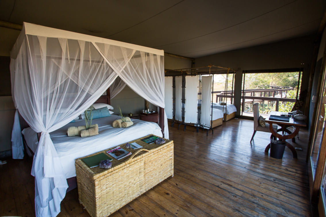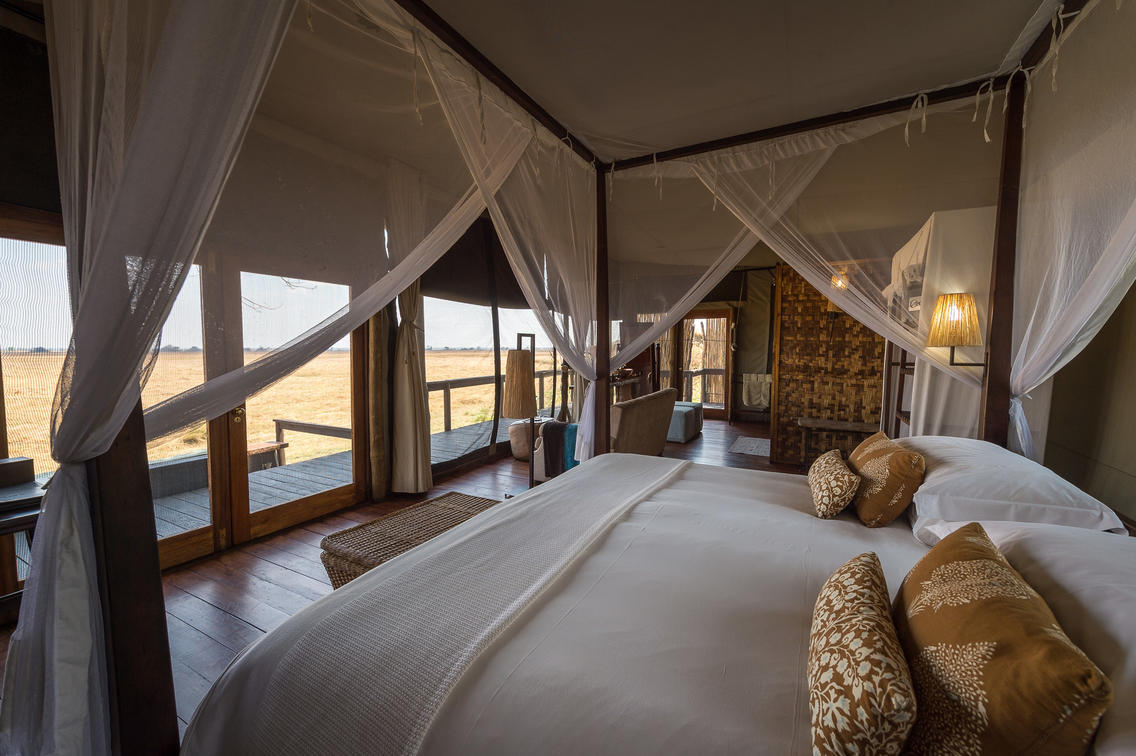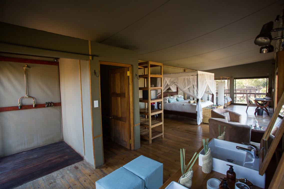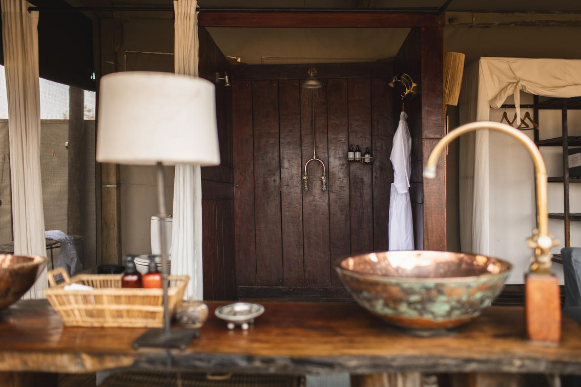 Each large and well-appointed en-suite tent features an inviting separate seating area, and an outdoor shower, open to the sky, all offering spectacular views of the surrounding plains.
