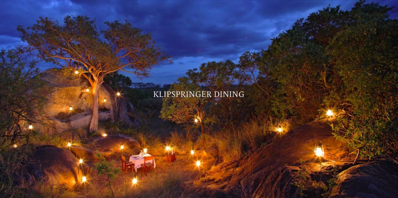 The perfect end to the perfect day: total privacy in your own illuminated corner of the darkening Serengeti. That’s what our Klipspringer dining experience delivers, within a setting of charm and intimacy.