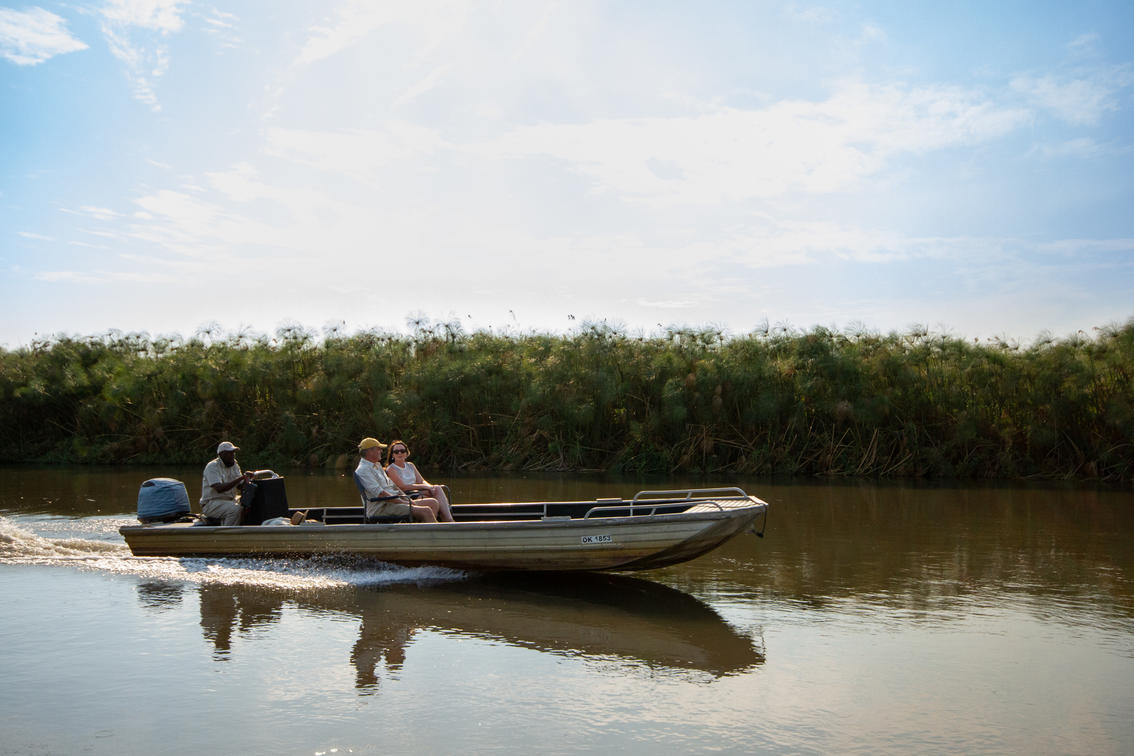 Guided excursions through the deeper channels and lagoons of the Okavango Delta in hard-bottom aluminum boats. The boats are equipped with comfortable seats, a foldaway canvas roof and life jackets.