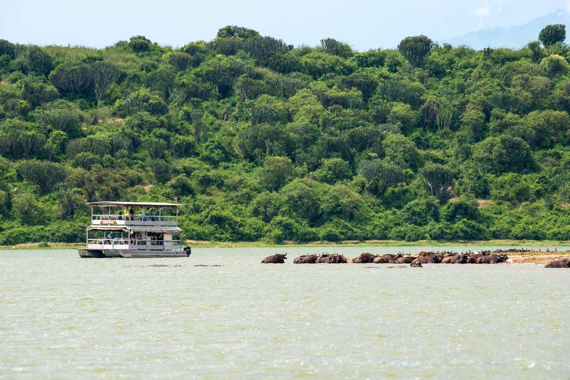 The Kazinga Channel is a 32-kilometer long channel, rich in wildlife, that links Lakes Edward and George. Boat trips down the channel depart from Mweya Safari Lodge (about an hour’s drive through the park from Kyambura Gorge Lodge) and last 3-4 hours. The boat cruise provides a wonderful opportunity to photograph the many animals that come to cool off at the waters’ edge, including lion, buffalo, hippo, elephant, and leopard.