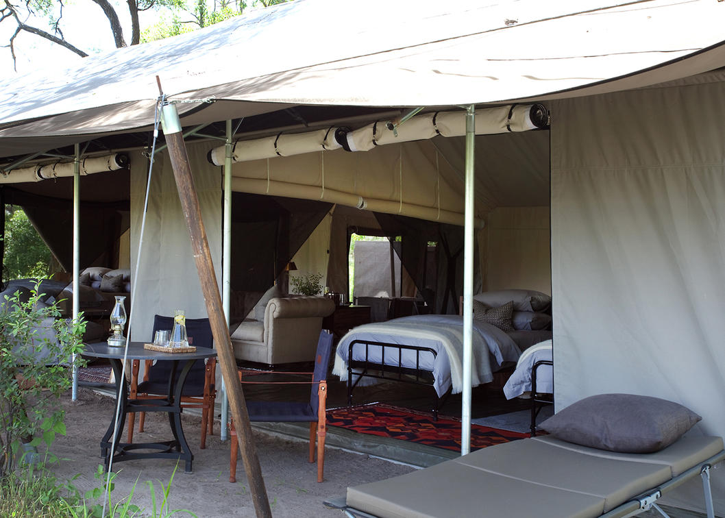 The camp is built in the classic 1950’s style, with luxury safari tents, en-suite bathrooms and living areas, not forgetting the romantic outdoor showers. All the tents are situated on ground level and the pathways to the tents meander between the large riverine trees.