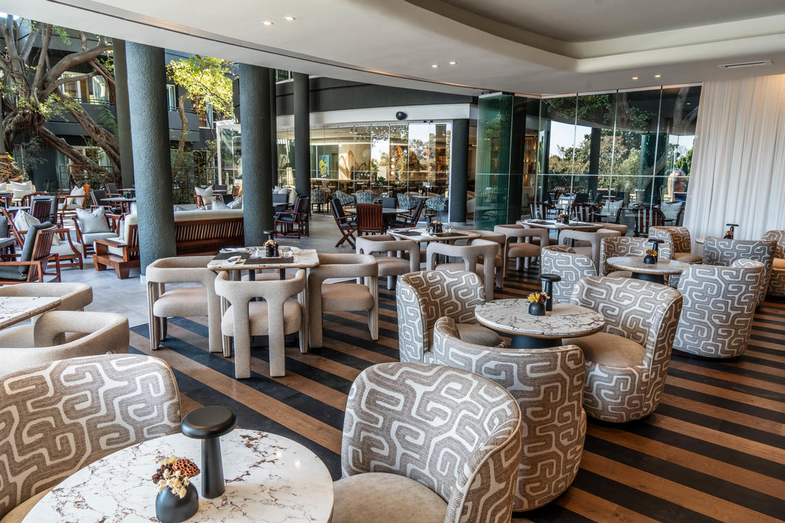 The Olive Bar offers more than just drinks—it’s an experience that beckons you to unwind and enjoy a light meal or a pre-dinner drink in a setting that exudes sophistication and charm. Glass stacking doors from the bar lead out onto the Terrace, offering magnificent views of warm African sunsets.