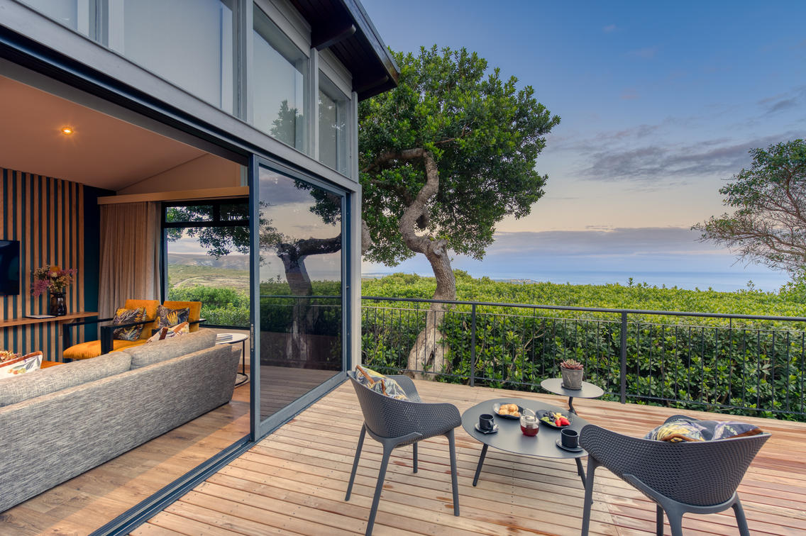 Our Two-Bedroom Suites epitomise luxurious home-from-home comforts and are ideal for families or friends travelling together. These spacious suites feature two private en-suite bedrooms with en-suite bathrooms (one with shower and one with bath), separate lounge and dining area with tea & coffee making facilities, minibar, cosy fireplace as well as a DVD player. The spacious suites open out onto a private outside deck overlooking the Walker Bay. As with all Two-Bedroom Luxury Suites, facilities such as satellite TV and secure room safes are standard.
