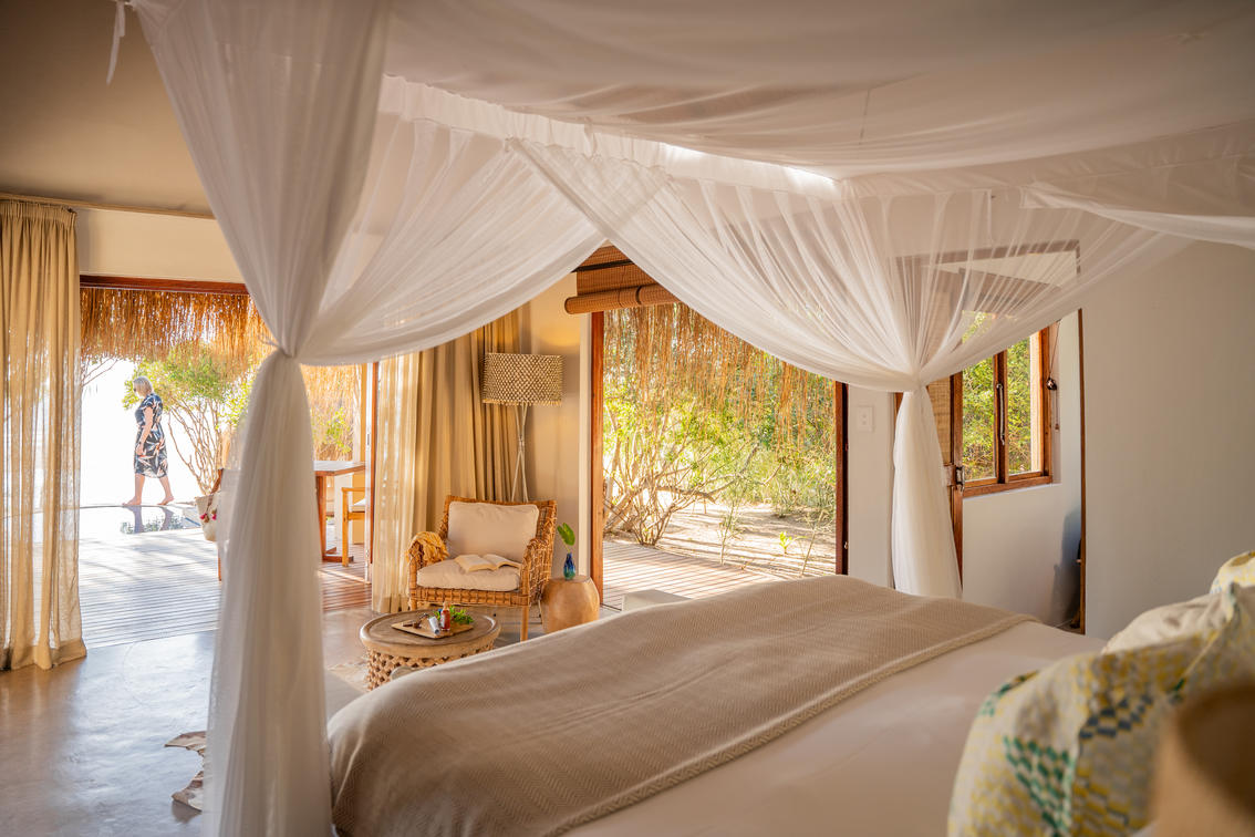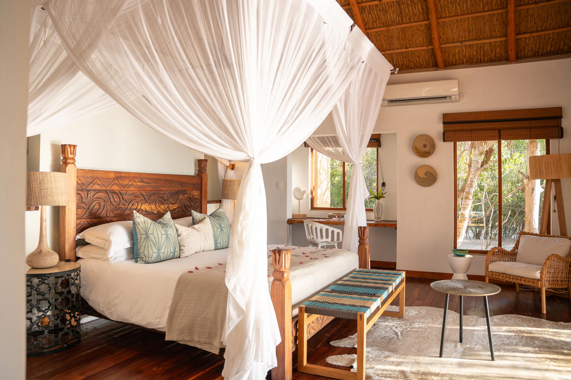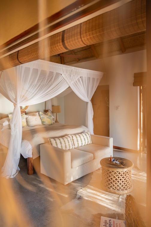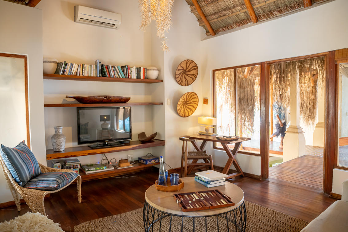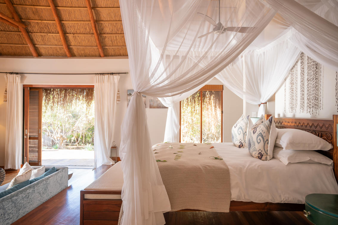 The Presidential Villa at Azura Benguerra has been described as one of the best villas anywhere in the Indian Ocean. It has a very secluded private location, some 150m down the beach from main Azura, and comes with its own Butler-host and private chef. Its the beach house of your dreams. The epitome of style and luxury, with its own unique décor, there are 3 en-suite bedrooms, indoor and outdoor bathrooms, a media room, sitting/dining area with ‘wine bar’, and huge infinity pool spanning the front of the villa. It is located just footsteps from the beach at the end of our property to ensure maximum privacy, with a fantastic treehouse to catch the afternoon breezes and panoramic views to Bazaruto Island and the Indian Ocean beyond.