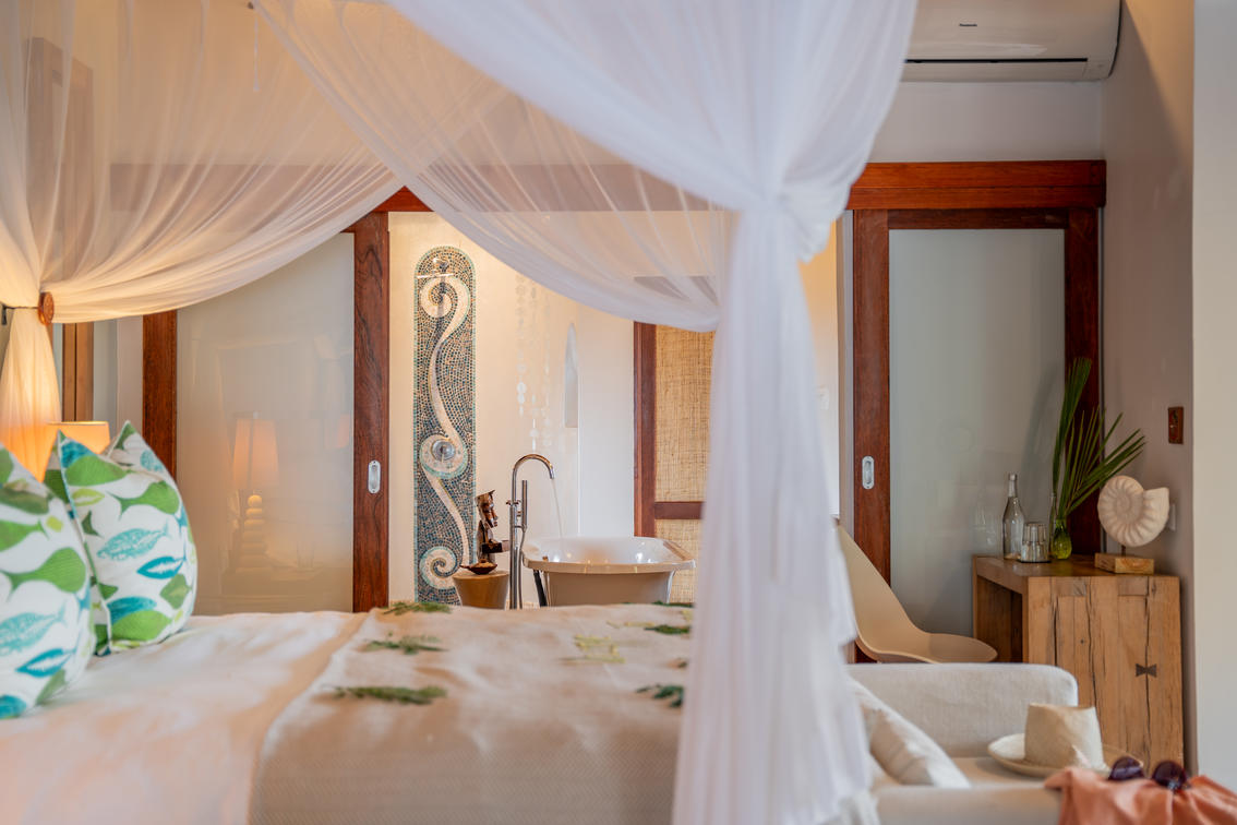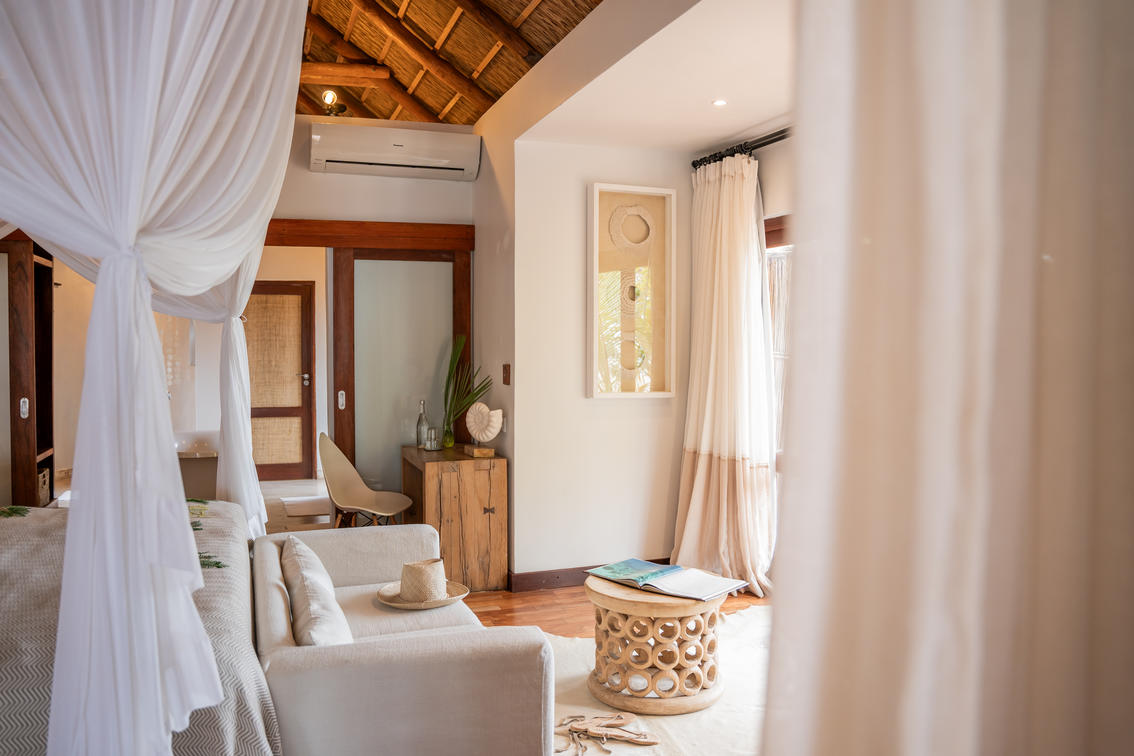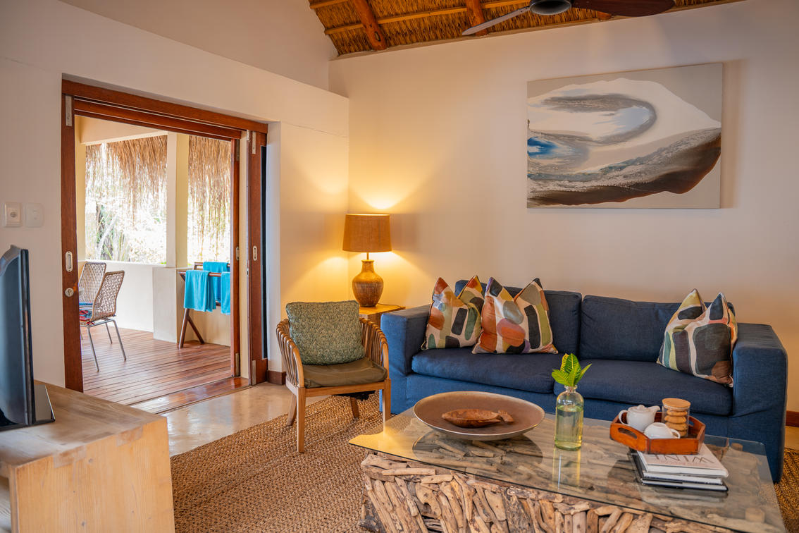 They offer the next level of comfort with even more outdoor space for the discerning Azura guest to enjoy. The main bedroom and bathroom area is similar to the existing Infinity Beach Villas and guests can now delight in the luxury of their own lounge area connected together via a walkway with glass sliding doors, and surrounded by our indigenous gardens. The lounge comprises of comfortable sofas around a flat screen television, and has its own bathroom, as well as a tea/coffee area with minibar and nespresso. The sofas can be converted to two beds for any children that may want to share.