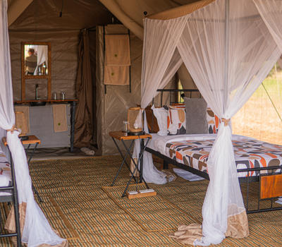 All Private Intimate Mobile Camps provide double or twin tents which can also be used for triple occupancy through the addition of an extra bed. All tents have ensuite shower rooms with hot and cold running water provided upon request. All tents are supplied with solar electricity. WiFi is available throughout the camp subject to camp location (as selected by you) and the availability of mobile telephone signal.