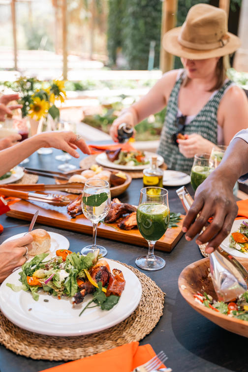 From breakfast in the dunes, lunch in the gardens or the 'hard rock' café, to dinner under the stars - a range of unforgettable meal options are available.